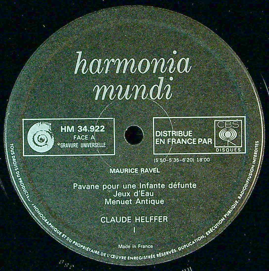 商品コード:1390-006[Harmonia Mundi] C.エルフェ(pf) / ラヴェル:Pf作品集/亡き王女のためのパヴァーヌ, 水の戯れ, ソナチネ, 鏡, 夜のガスパール, クープランの墓 他