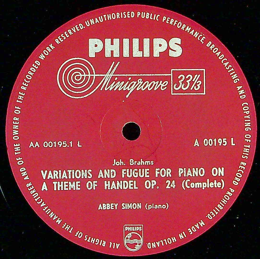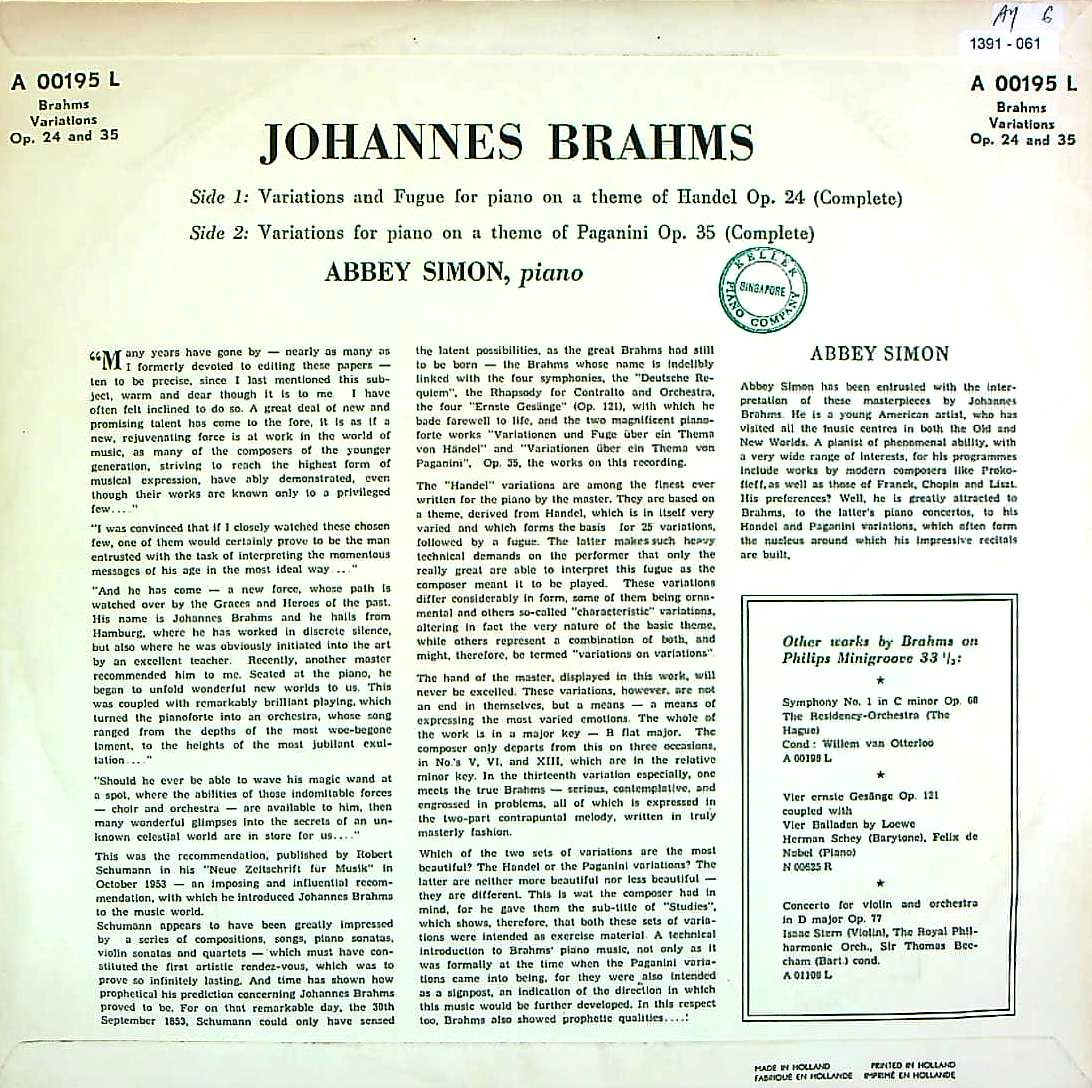 商品コード:1391-061[PHILIPS] A.サイモン(pf) / ブラームス:パガニーニ変奏曲Op.24, ヘンデル変奏曲Op.35