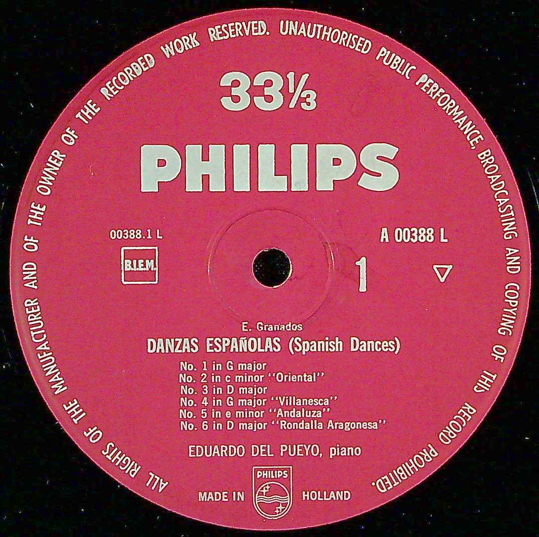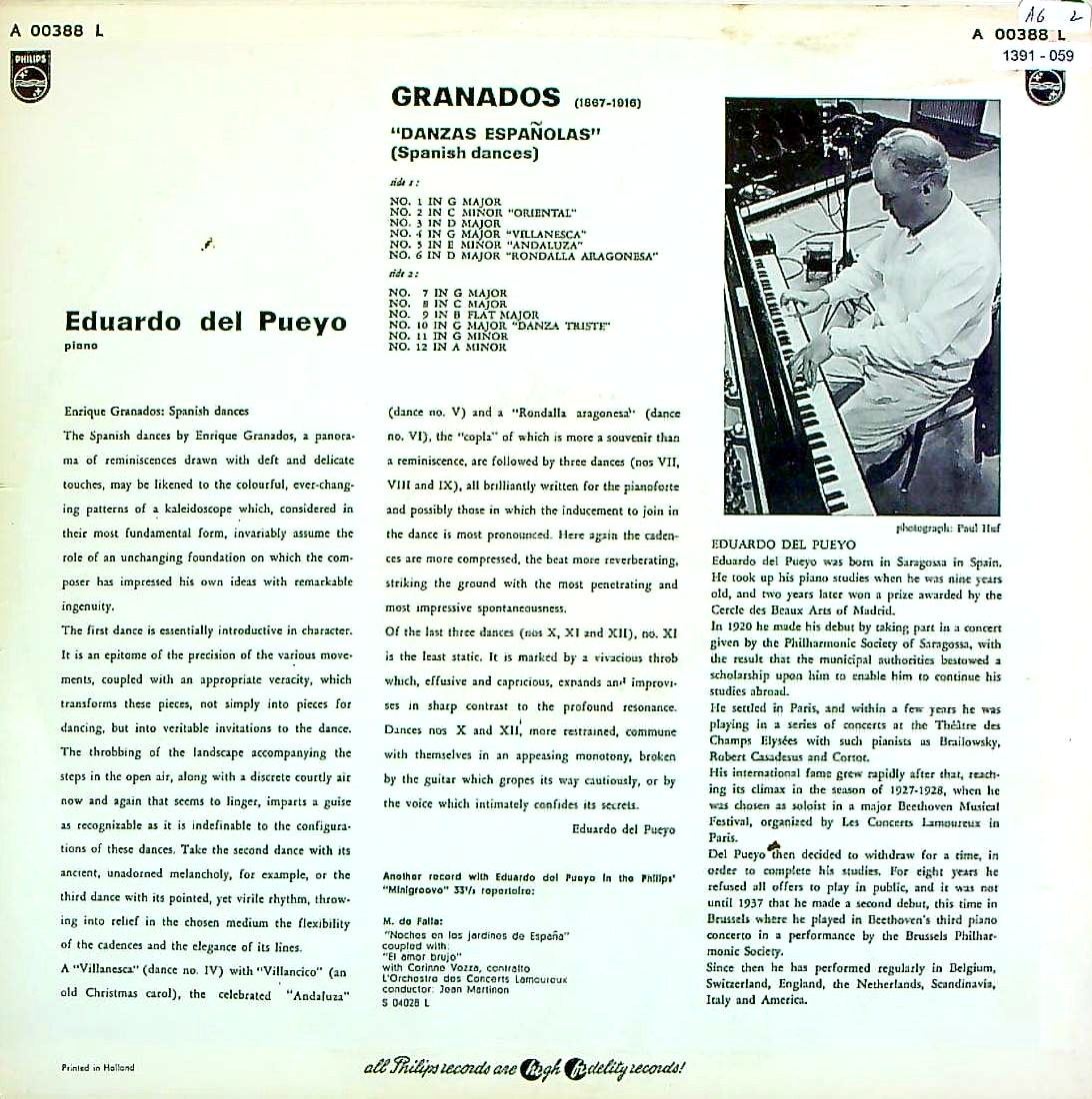 商品コード:1391-059[PHILIPS] E.d.プエヨ(pf) / グラナドス:スペイン舞曲集Op.37(全12曲)