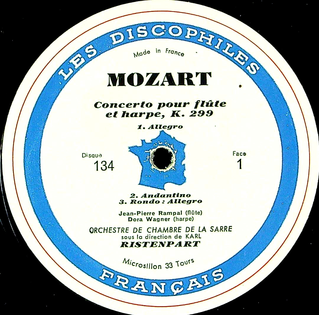 商品コード:1391-015b[DF] J.P.ランパル(fl) D.ワグナー(hp) K.リステンパルト/ モーツァルト:Fl・Hp協奏曲K.299, ディヴェルティメントK.251