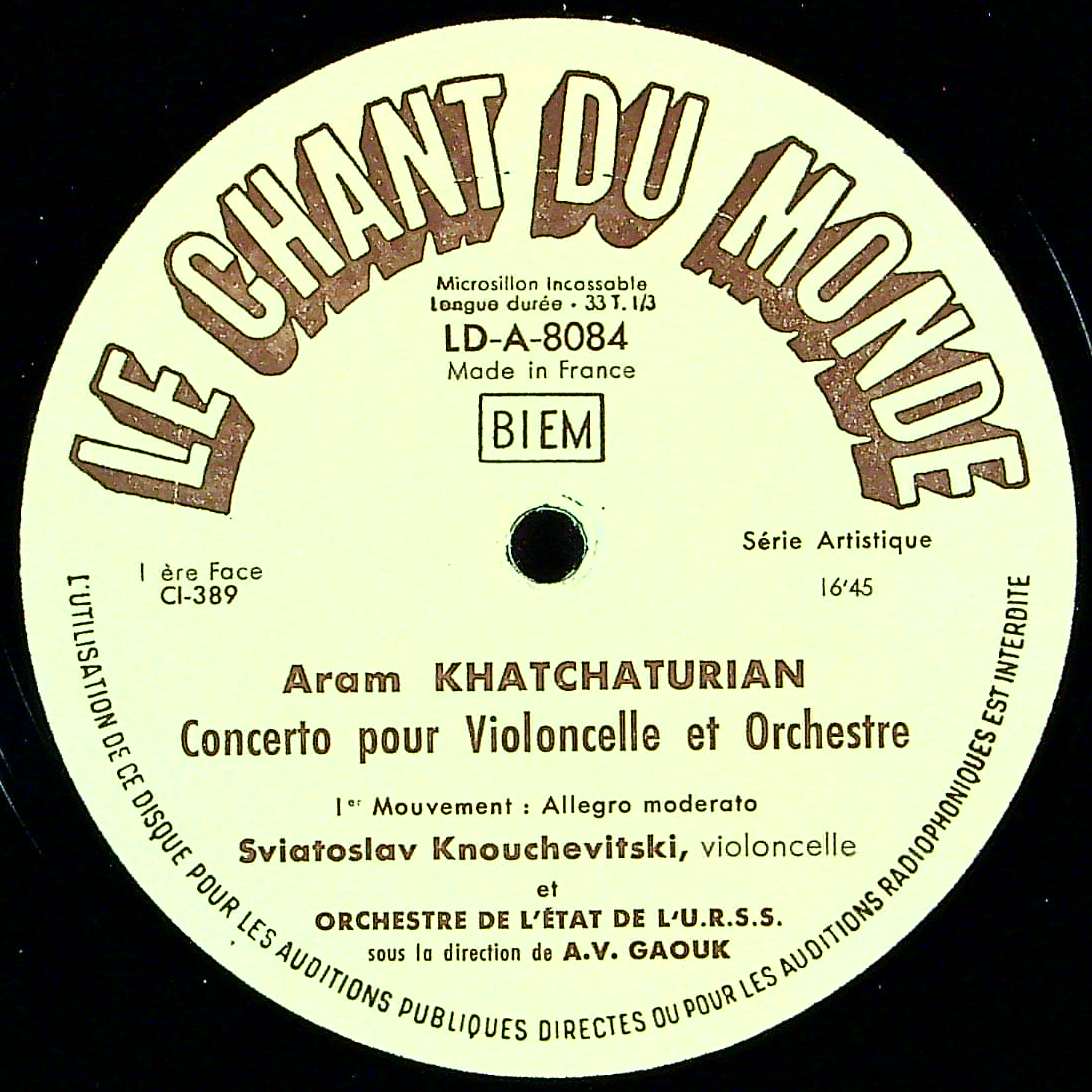 商品コード:1391-005[Chant du Monde] S.クヌシェヴィツキー(vc)/ ハチャトゥリアン:Vc協奏曲