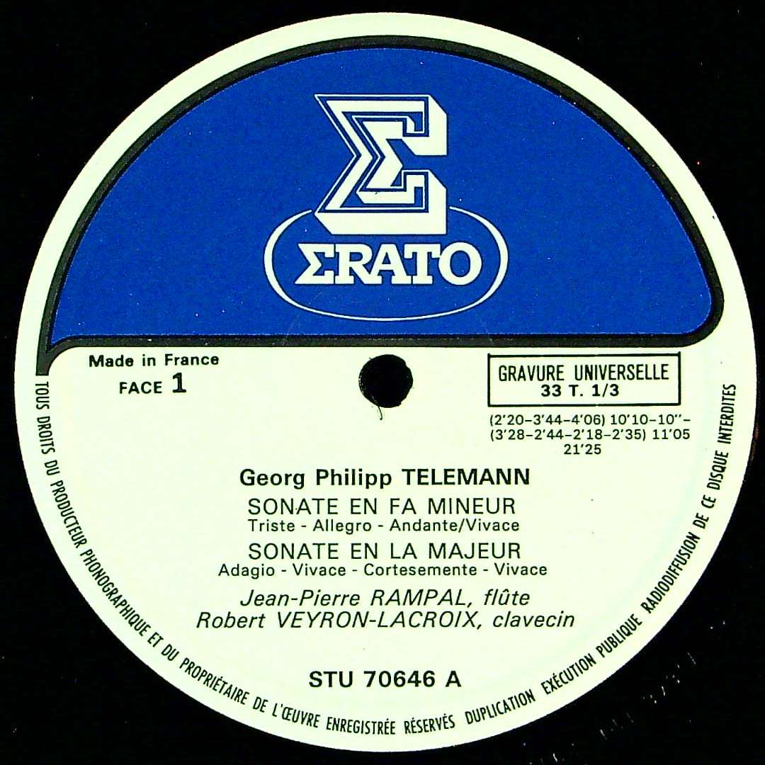 商品コード:1392-064[ERATO] J.P.ランパル(fl)/ テレマン:Flソナタ集(4曲)/ヘ短調, イ長調, ト短調, ニ短調