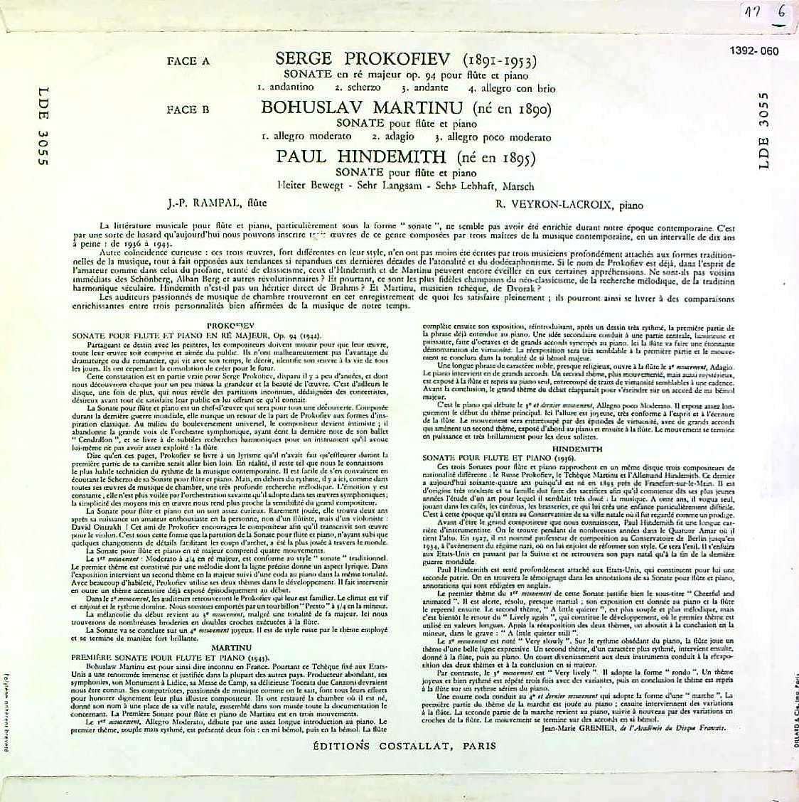 商品コード:1392-060[ERATO] J.P.ランパル(fl)/ プロコフィエフ:FlソナタOp.94, マルティヌー:Flソナタ, ヒンデミット:Flソナタ