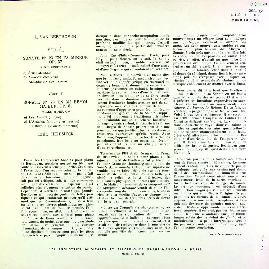 商品コード:1392-054p[VSM] E.ハイドシェック(pf) / ベートーヴェン:Pfソナタ23番Op.57「熱情」, Pfソナタ26番Op.81「告別」