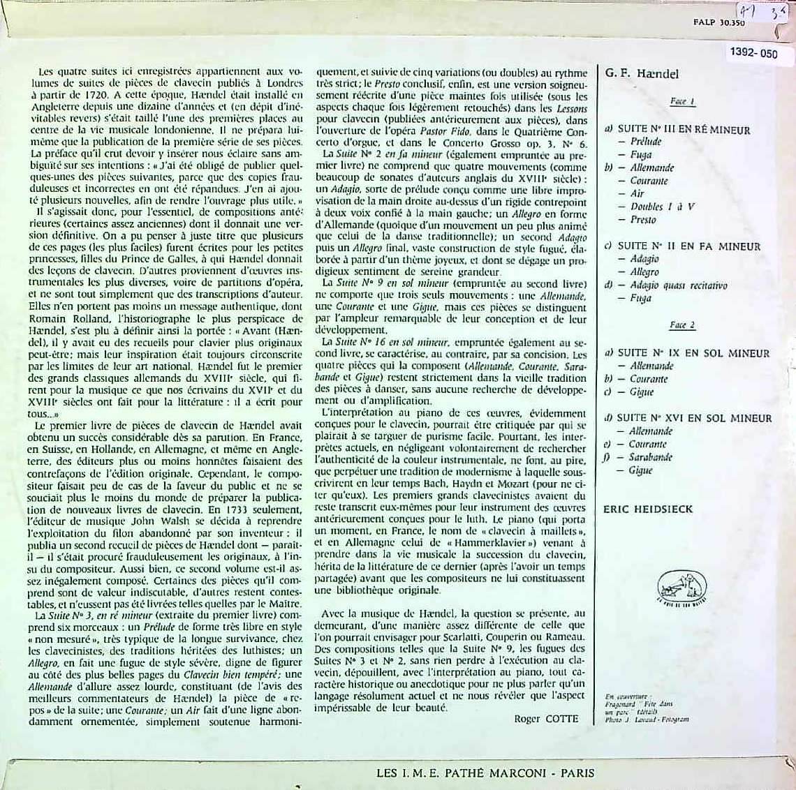 商品コード:1392-050[VSM] E.ハイドシェック(pf) / ヘンデル:cemb組曲集-1/第1集4番HWV.429, 第2集8番HWV.441, 3番HWV.436, 5番HWV.438