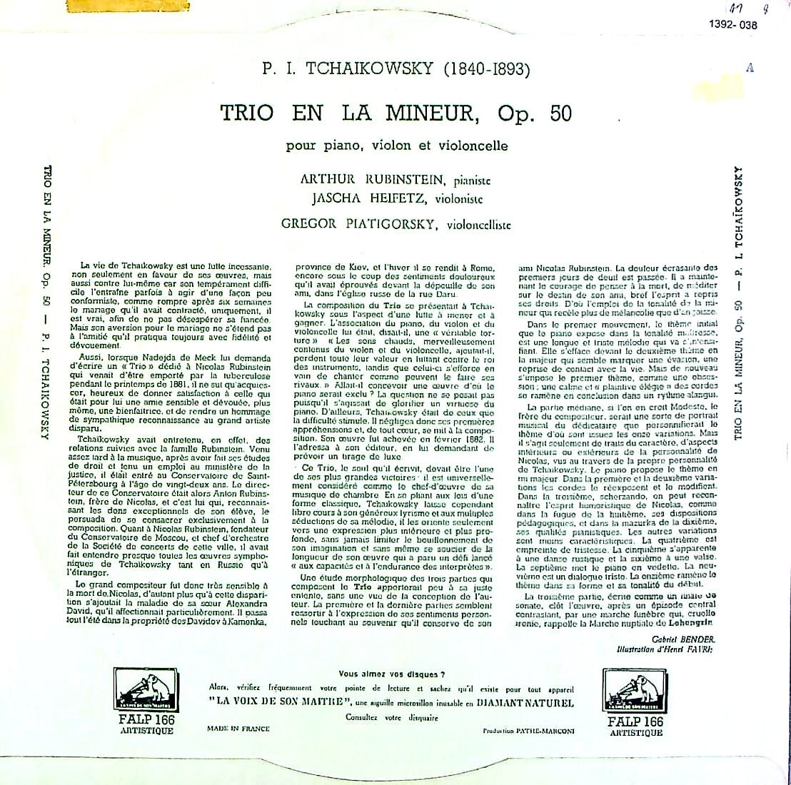 商品コード:1392-038[VSM] ルービンシュタイン ハイフェッツ .ピアティゴルスキー/ チャイコフスキー:Pf三重奏曲Op.50