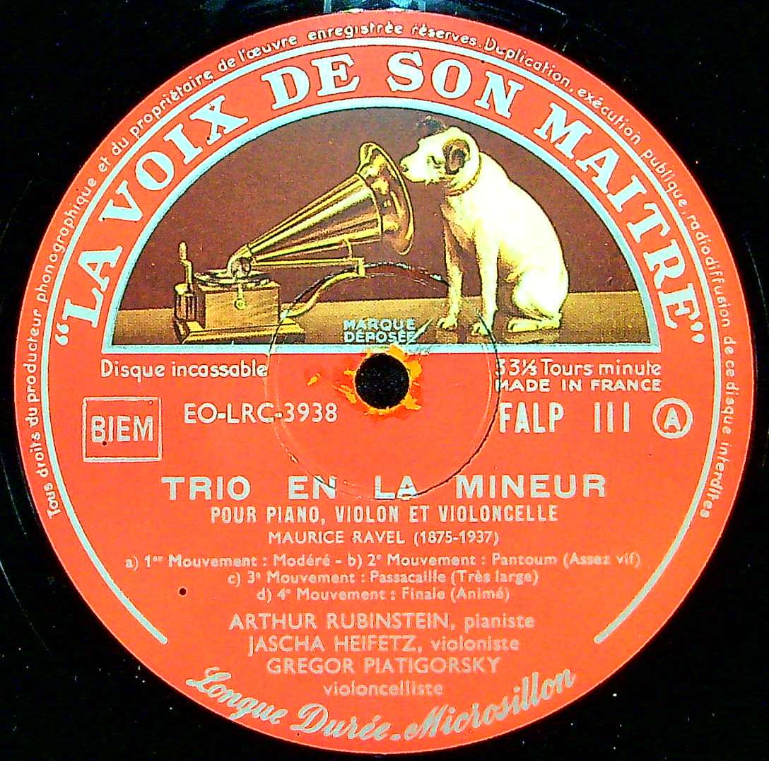 商品コード:1392-037b[VSM] ルービンシュタイン ハイフェッツ ピアティゴルスキー/ メンデルスゾーン:PfトリオOp.49, ラヴェル:Pfトリオ1番Op.49
