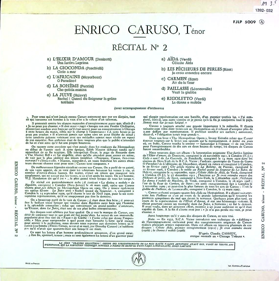 商品コード:1392-032[VSM] E.カルーソー(t) 他 / Recital No.2/ドニゼッティ, ポンキエッリ, マイアベーア, プッチーニ, ヴェルディ 他