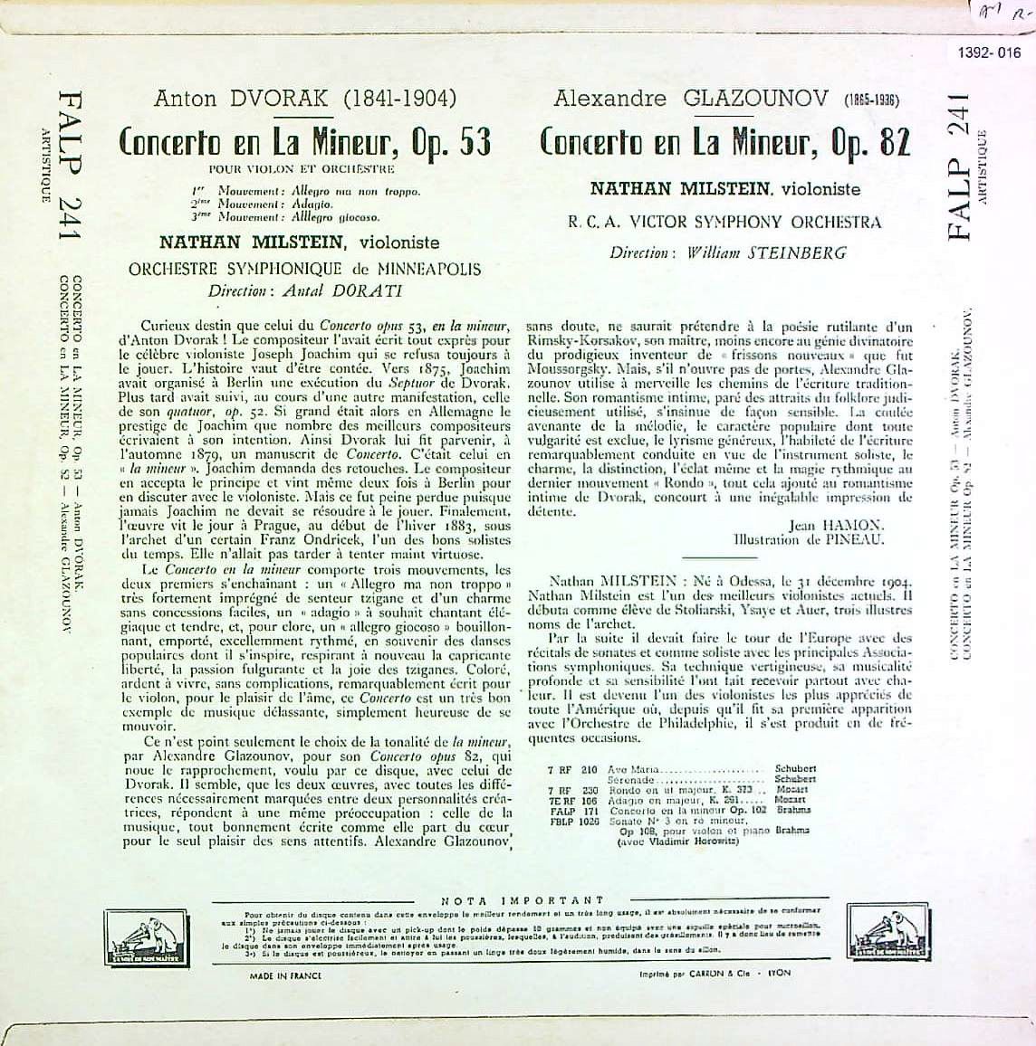 商品コード:1392-016[VSM] N.ミルシテイン(vn)/ ドヴォルザーク:Vn協奏曲Op.53, グラズノフ:Vn協奏曲Op.82