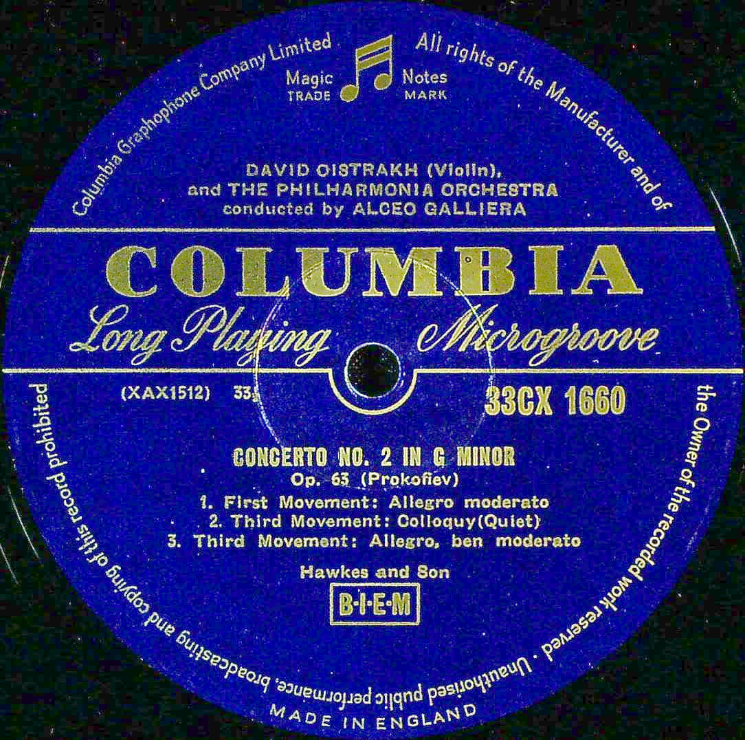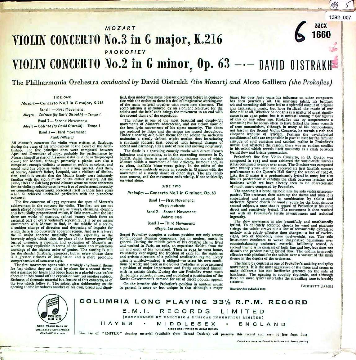 商品コード:1392-007[COLUMBIA] D.オイストラフ(vn)/ モーツァルト:Vn協奏曲3番K.216, プロコフィエフ:Vn協奏曲2番Op.63