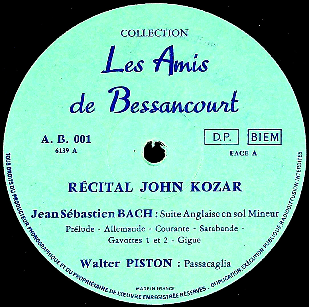 商品コード:1392-003[Les Amis De~] J.コザール(pf) / バッハ:イギリス組曲第3番BWV.808, ピストン:パッサカリア 他