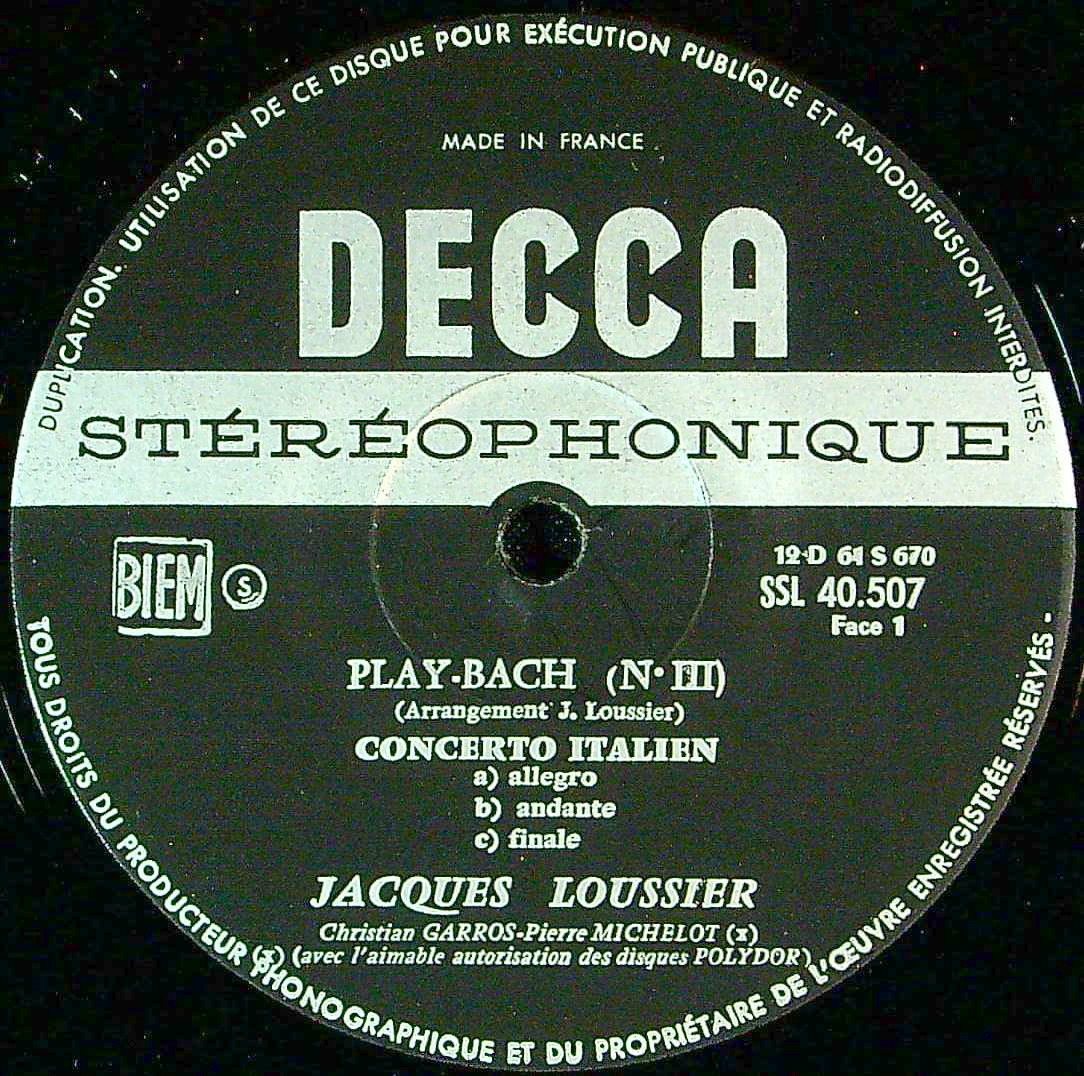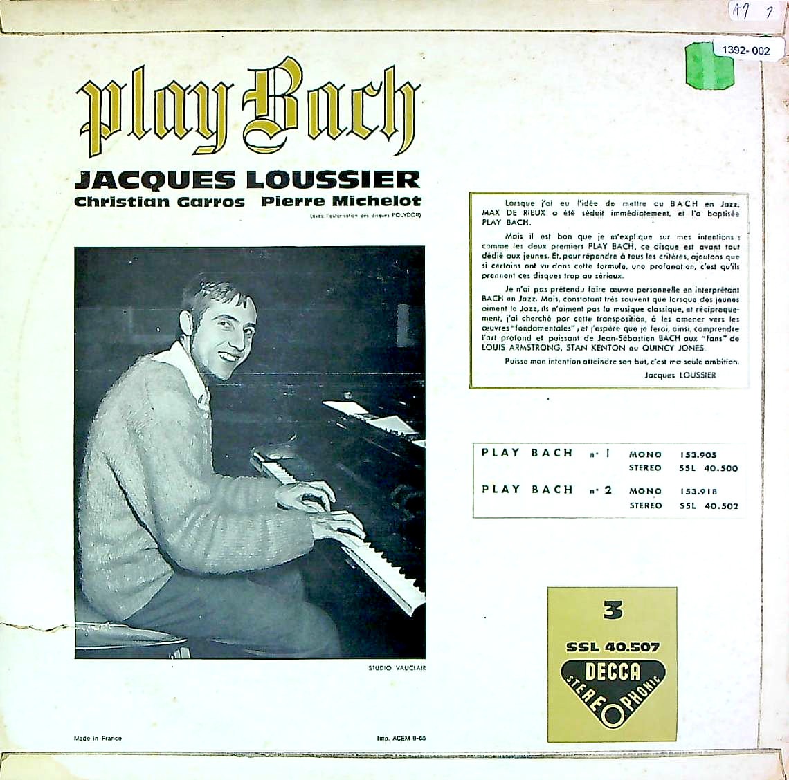 商品コード:1392-002[DECCA] ジャック・ルーシェ・トリオ/ プレイ・バッハVol.3