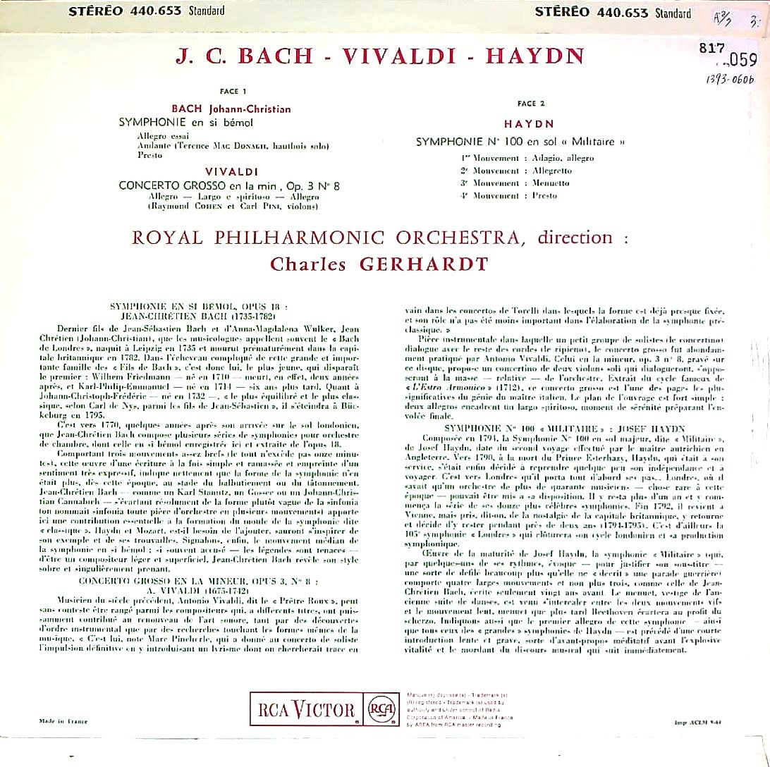 商品コード:1393-060b[RCA] C.ガーハート/ J.C.バッハ:交響曲Op.18-2, ヴィヴァルディ:2Vn協奏曲Rv.522, ハイドン:交響曲100番「軍隊」 Hob.I:100