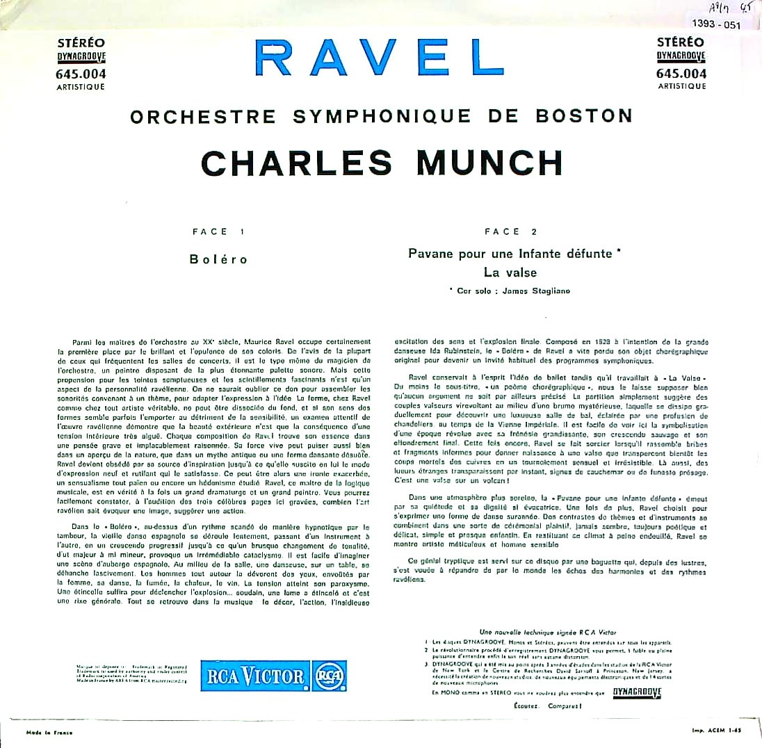商品コード:1393-051[RCA] C.ミュンシュ/ ラヴェル:管弦楽作品集/ボレロ, 亡き王女のためのパヴァーヌ, ラ・ヴァルス