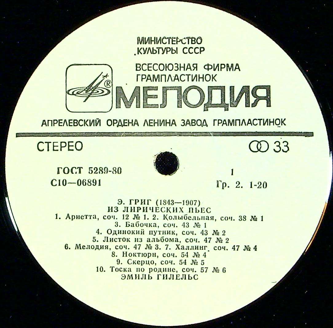 商品コード:1393-034t[MELODIYA] E.ギレリス(pf) / グリーグ:抒情小曲集(全10巻/66曲)~抜粋20曲
