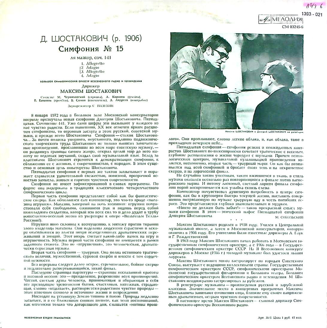 商品コード:1393-021t[MELODIYA] M.ショスタコーヴィチ/ ショスタコーヴィチ:交響曲15番Op.141