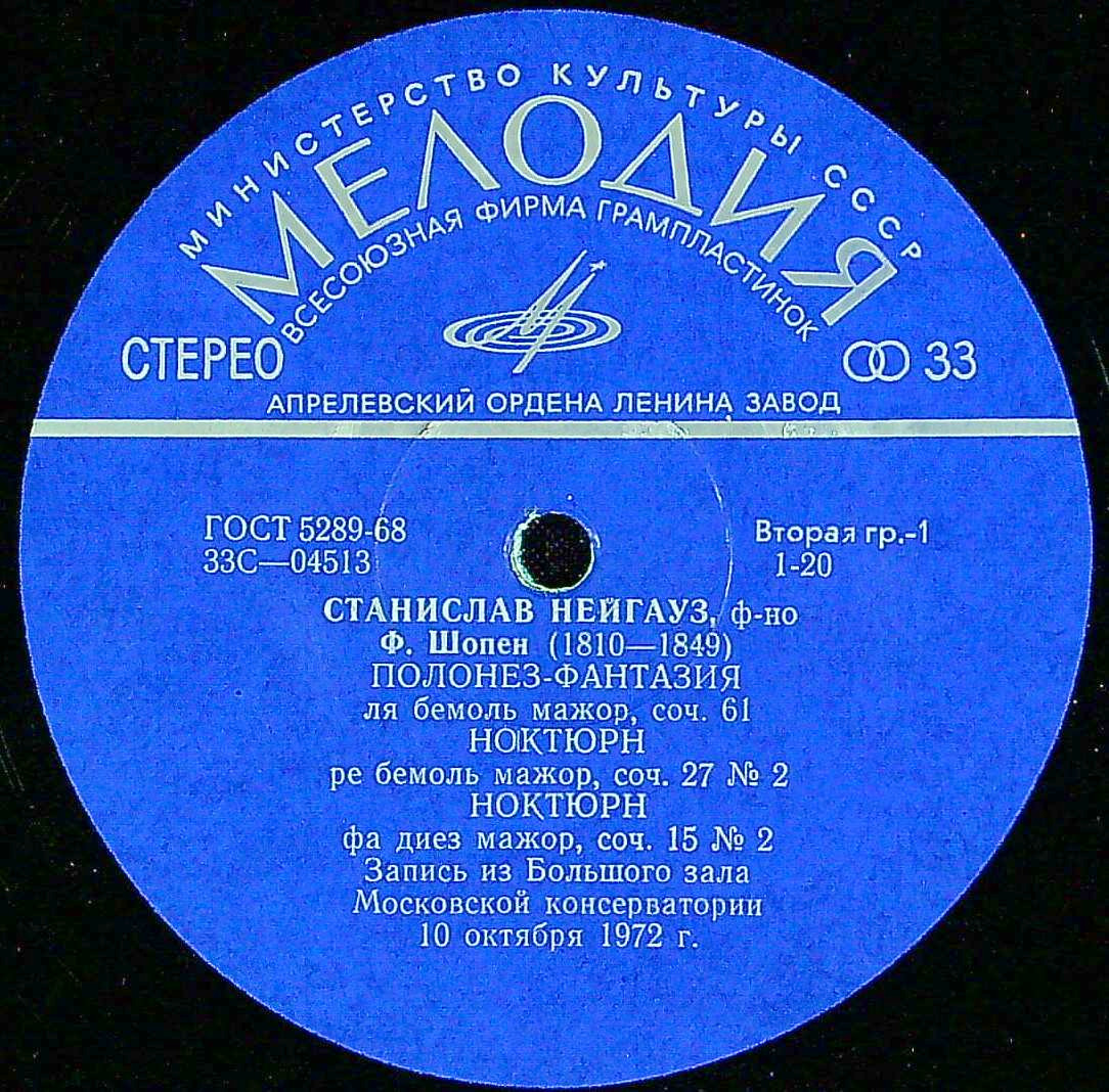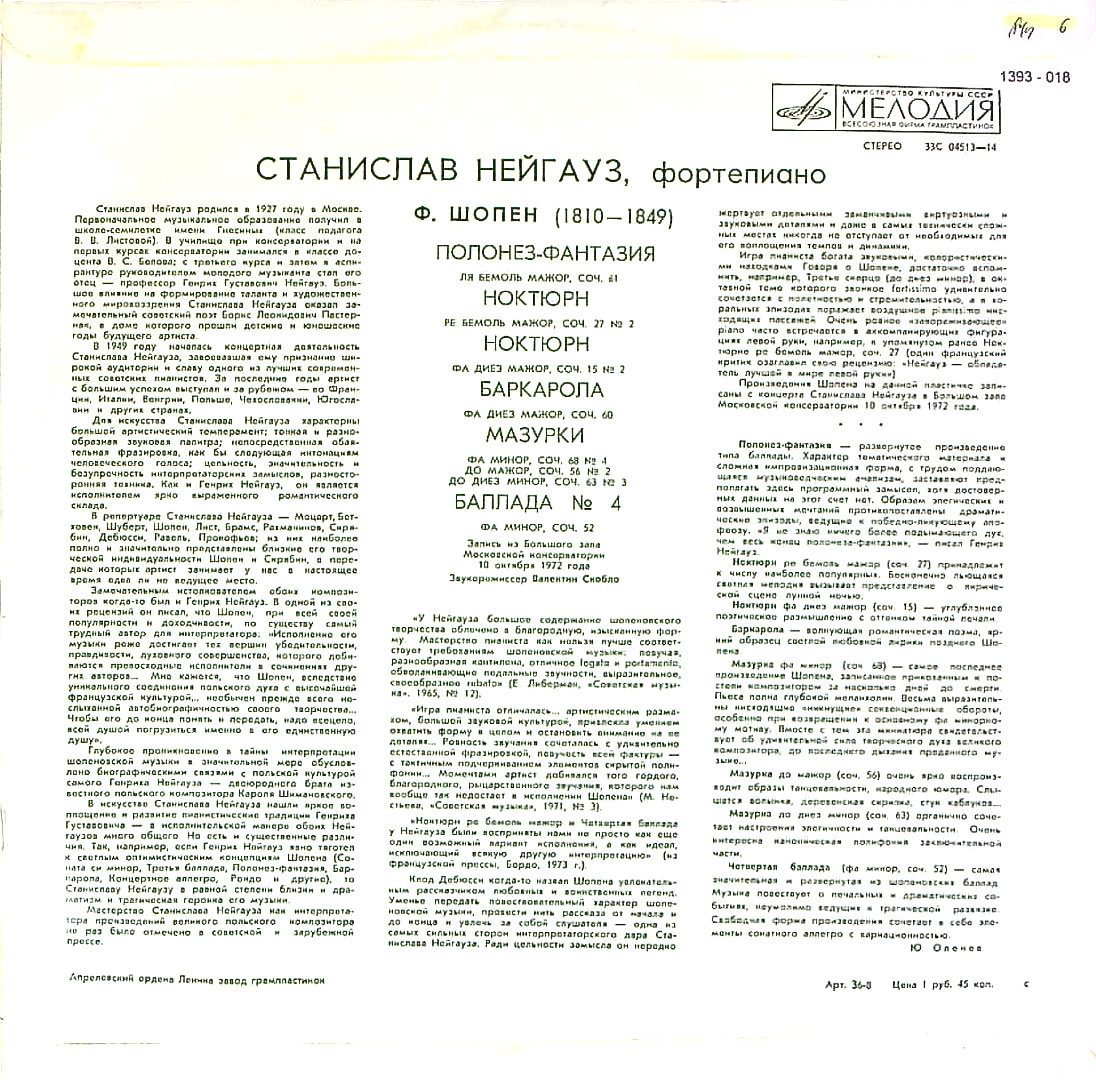 商品コード:1393-018n[MELODIYA] S.ネイガウス(pf) / モスクワ・ライブ1972/ショパン:幻想ポロネーズ, 夜想曲5番&8番, 舟歌 他