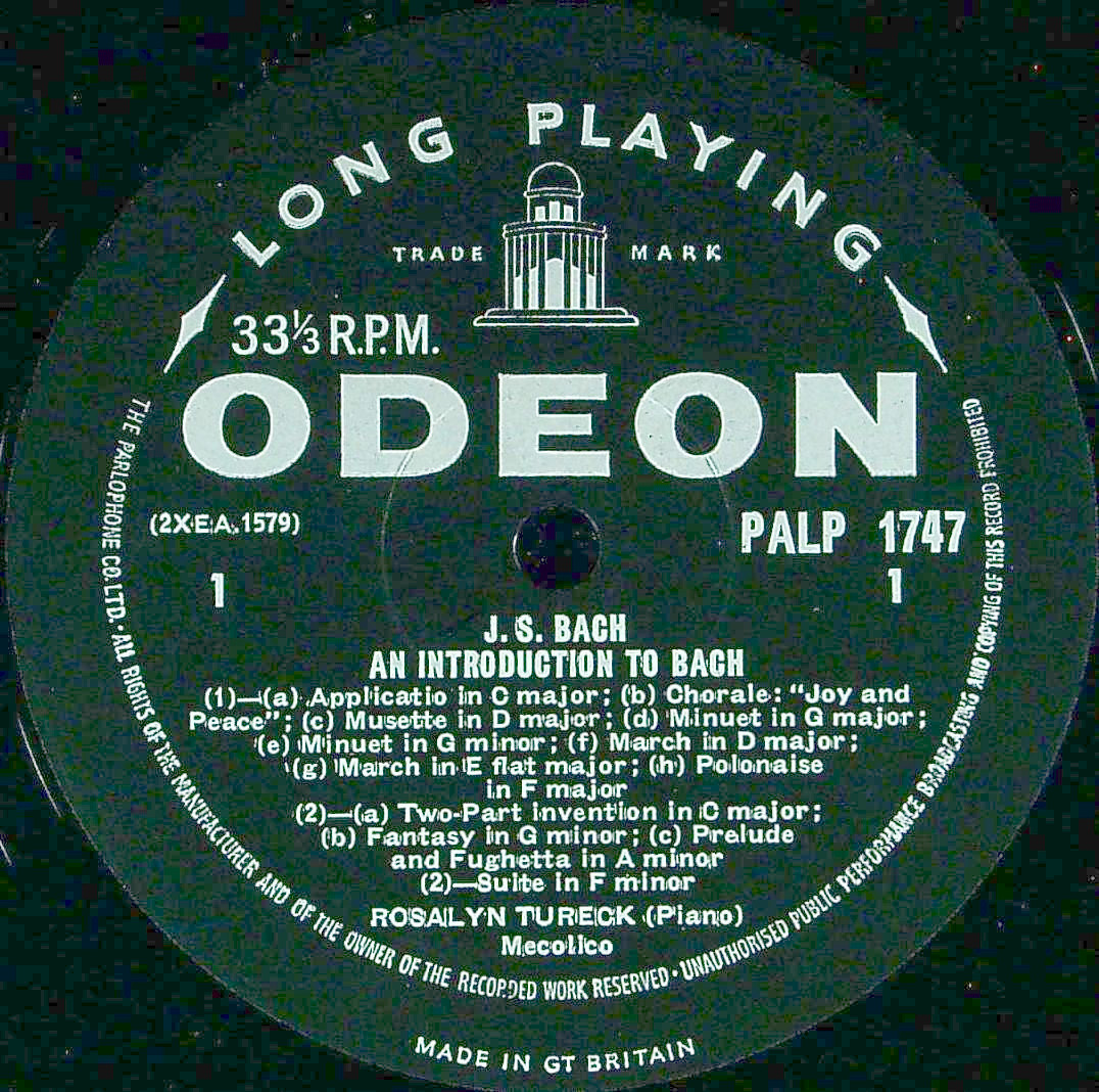商品コード:1393-004[ODEON] R.テューレック(pf) / バッハ:W.F.バッハの音楽帖(抜粋13曲), イタリア風のアリアと変奏BWV.989