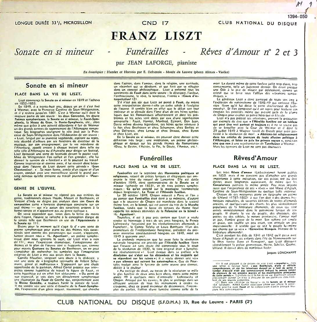 商品コード:1394-050[CLUB NATIONAL] J.ラフォルジュ(pf) / リスト:Pf作品集/愛の夢2番&3番, Pfソナタ ロ短調, 葬送