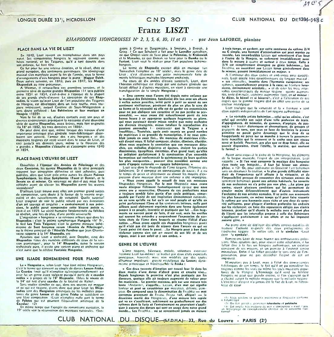 商品コード:1394-048c[CLUB NATIONAL] J.ラフォルジュ(pf) / リスト:ハンガリー狂詩曲Vol.1&3/1~6番, 10&11番, 13~15番
