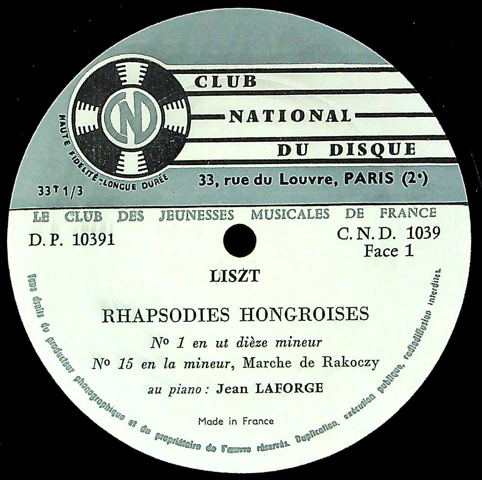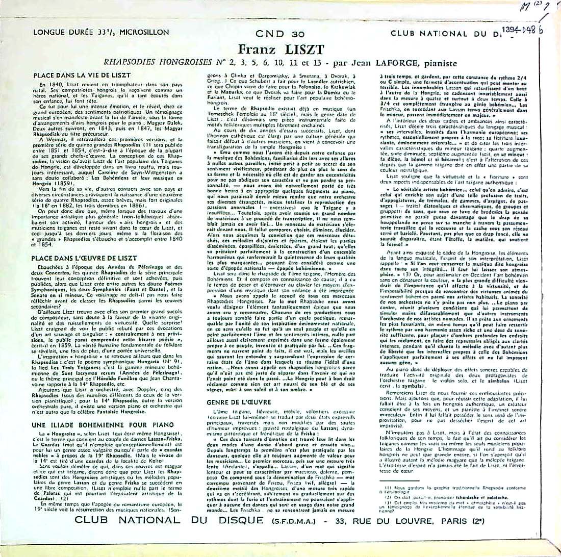 商品コード:1394-048b[CLUB NATIONAL] J.ラフォルジュ(pf) / リスト:ハンガリー狂詩曲Vol.1&3/1~6番, 10&11番, 13~15番
