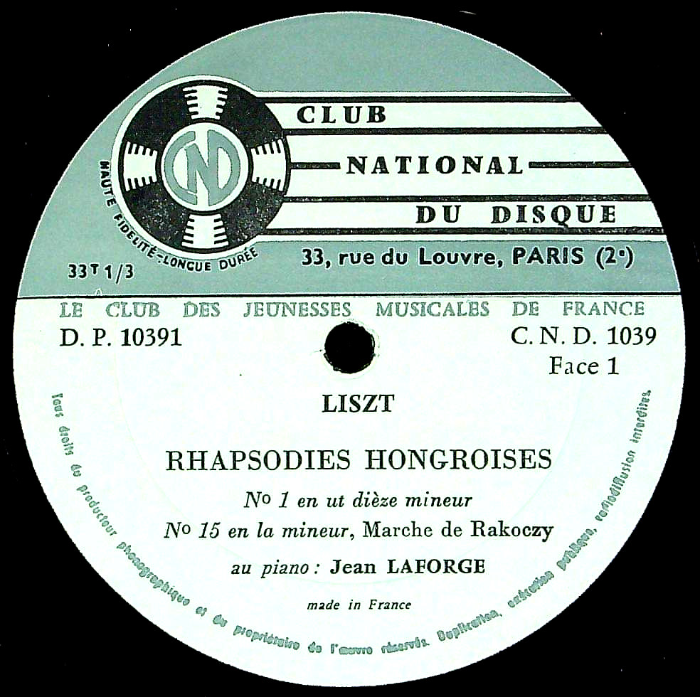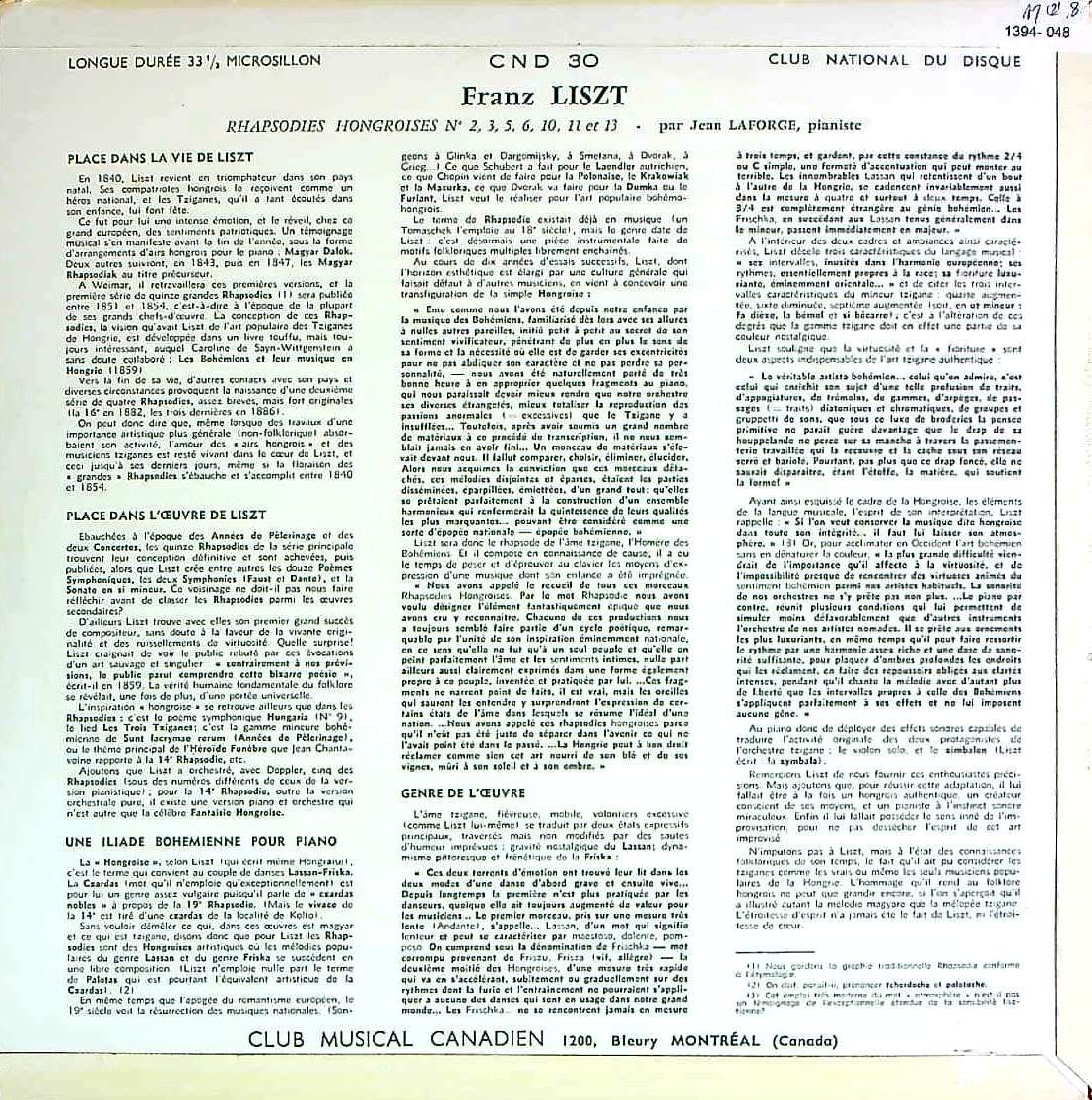 商品コード:1394-048[CLUB NATIONAL] J.ラフォルジュ(pf) / リスト:ハンガリー狂詩曲Vol.1&3/1~6番, 10&11番, 13~15番