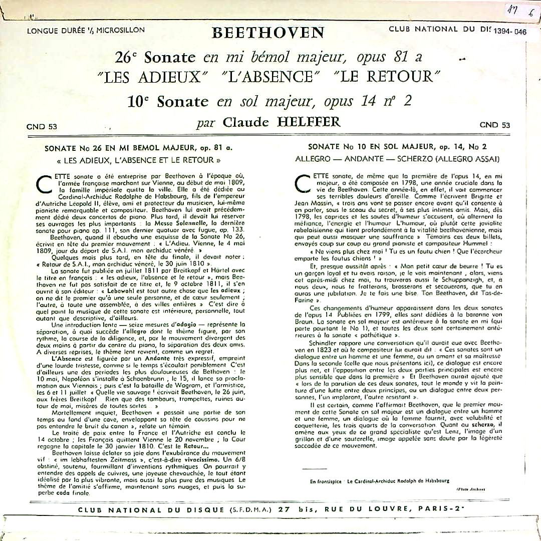 商品コード:1394-046[CLUB NATIONAL] C.エルフェ(pf) / ベートーヴェン:Pfソナタ集Vol.3/26番Op.81a「告別」, 10番Op.14-2