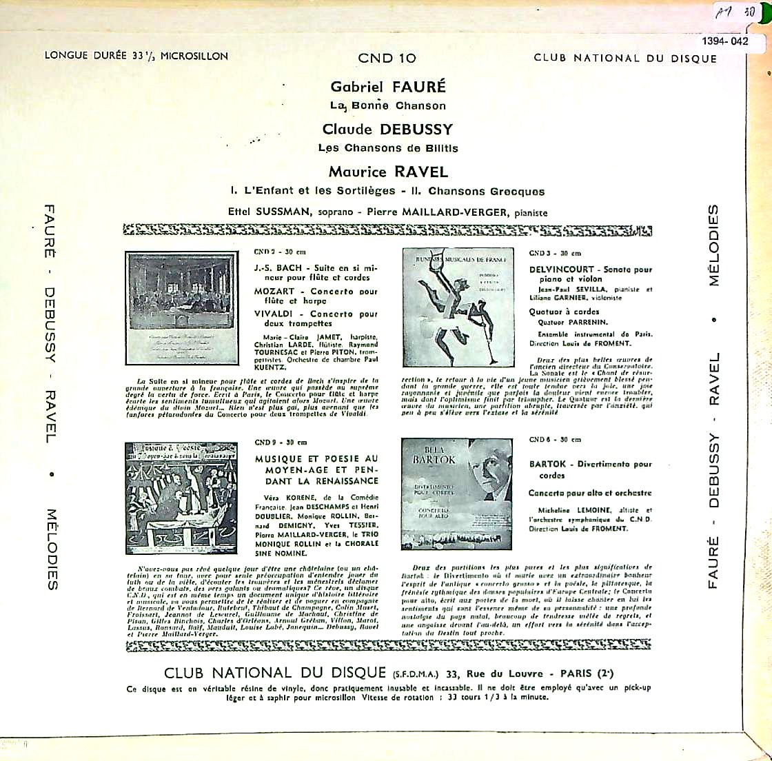 商品コード:1394-042[CLUB NATIONAL] E.シュスマン(s) / フランス歌曲集/フォーレ, ドビュッシー, ラヴェル