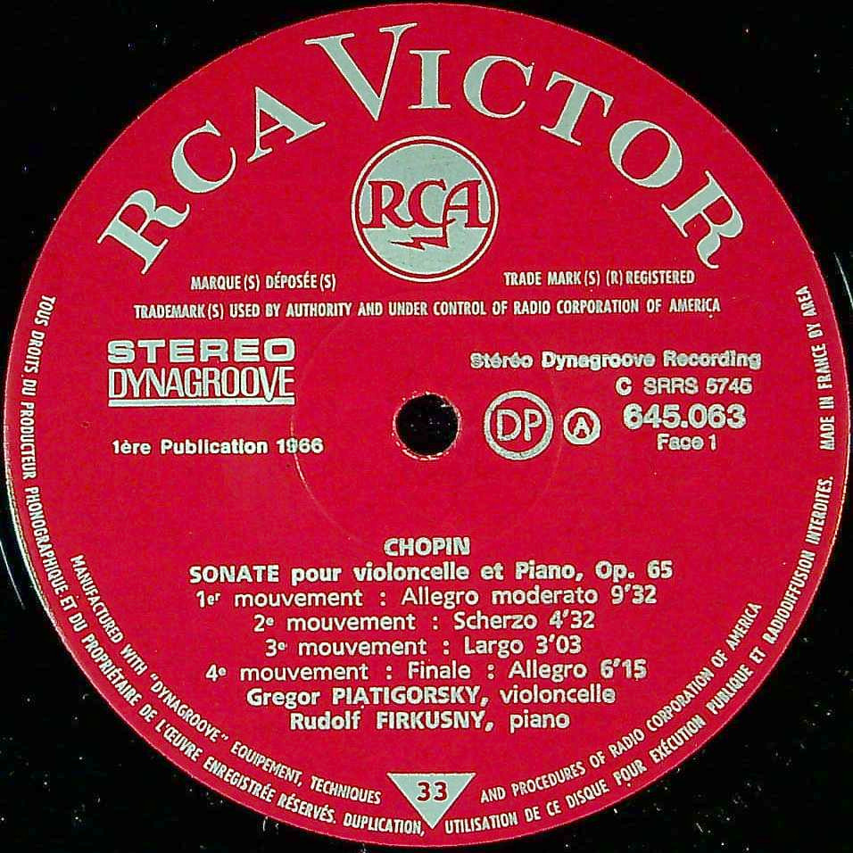 商品コード:1394-040b[RCA] G.ピアティゴルスキー(vc)/ ショパン:Vcソナタ Op.65, プロコフィエフ:Vcソナタ Op.119