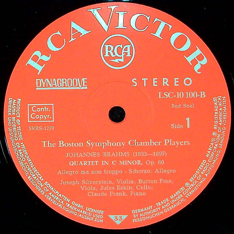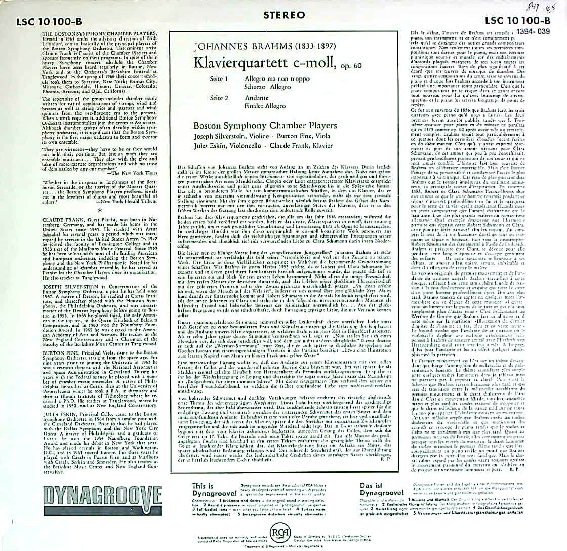 商品コード:1394-039[RCA] ボストンso.チェンバー・プレイヤーズ/ ブラームス:Pf四重奏曲3番Op.60