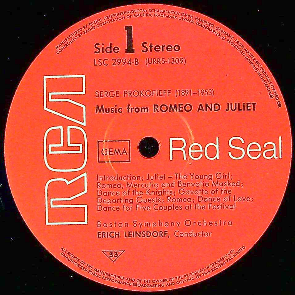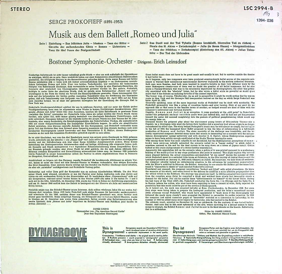 商品コード:1394-036[RCA] E.ラインスドルフ/ プロコフィエフ:バレエ音楽「ロメオとジュリエット」Op.64(ハイライト)