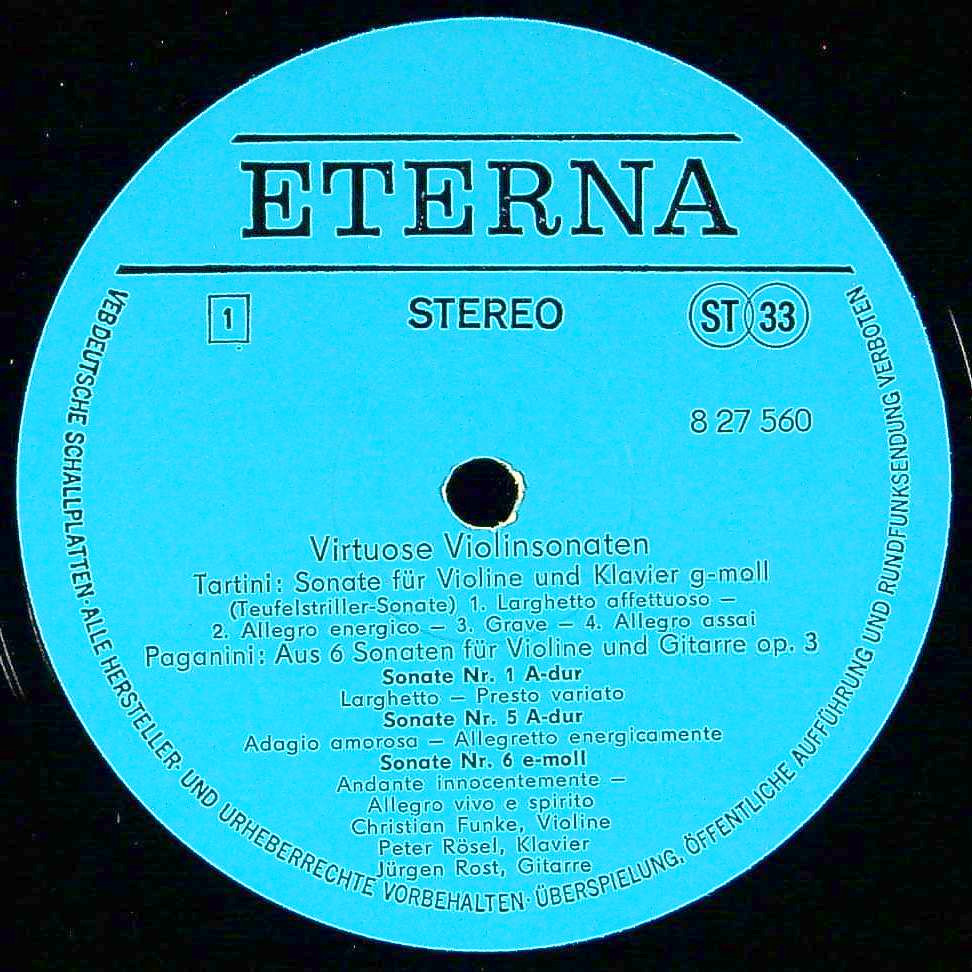 商品コード:1394-033t[ETERNA] C.フンケ(vn) P.レーゼル(pf) J.ロスト(gt)/ タルティーニ:悪魔のトリル, パガニーニ:6つのソナタOp.3(抜粋3曲), フランク:Vnソナタ イ長調