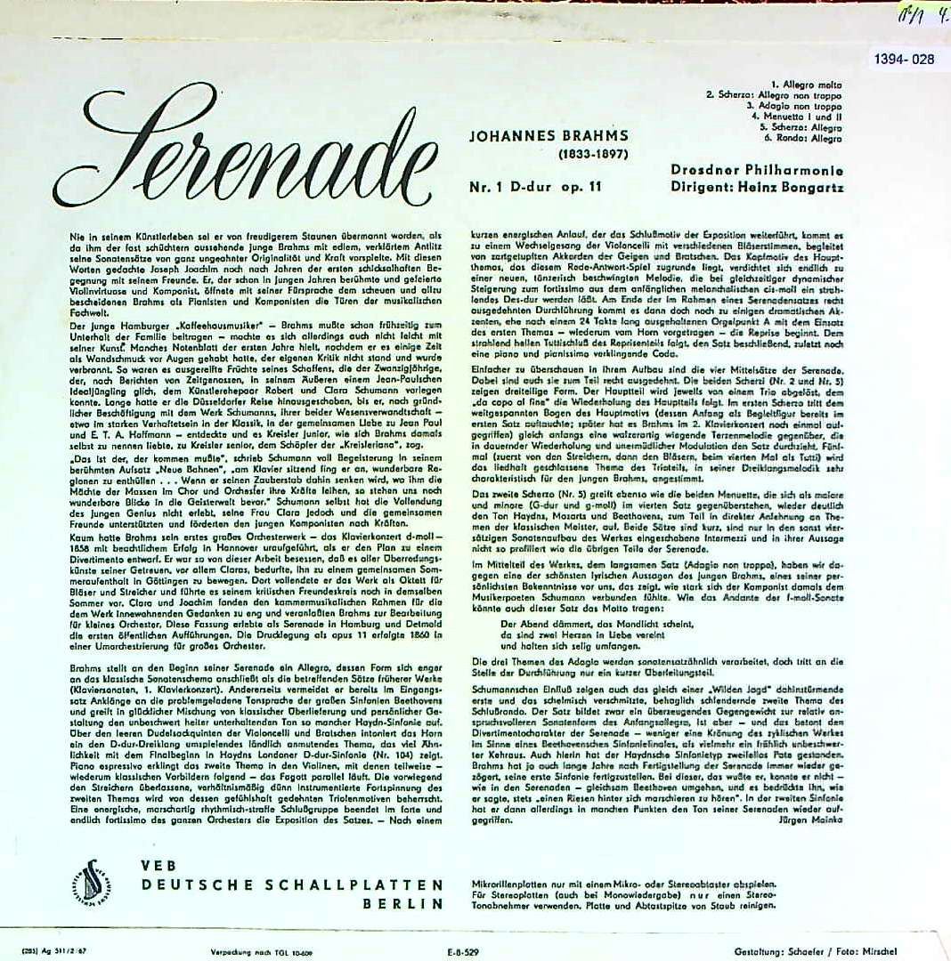 商品コード:1394-028n[ETERNA] H.ボンガルツ/ ブラームス:管弦楽のためのセレナーデ1番Op.11
