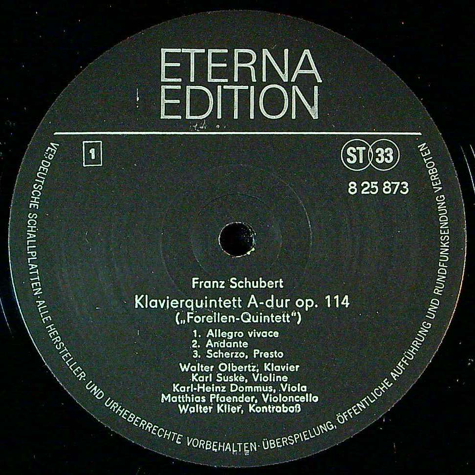 商品コード:1394-026n[ETERNA] W.オルベルツ(pf) K.ズスケ(vn) K.H.ドムス(va) 他/ シューベルト:五重奏曲D667「鱒」