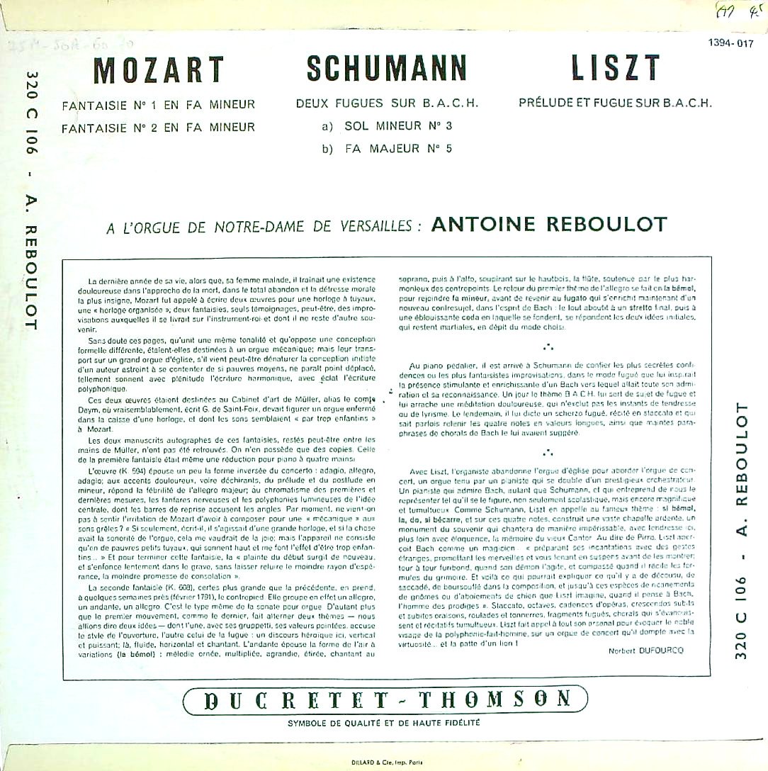 商品コード:1394-017n[Ducretet Thomson] A.ルブーロ(org) / モーツァルト:アダージョとアレグロK.594, 幻想曲 K.608, シューマン, リスト