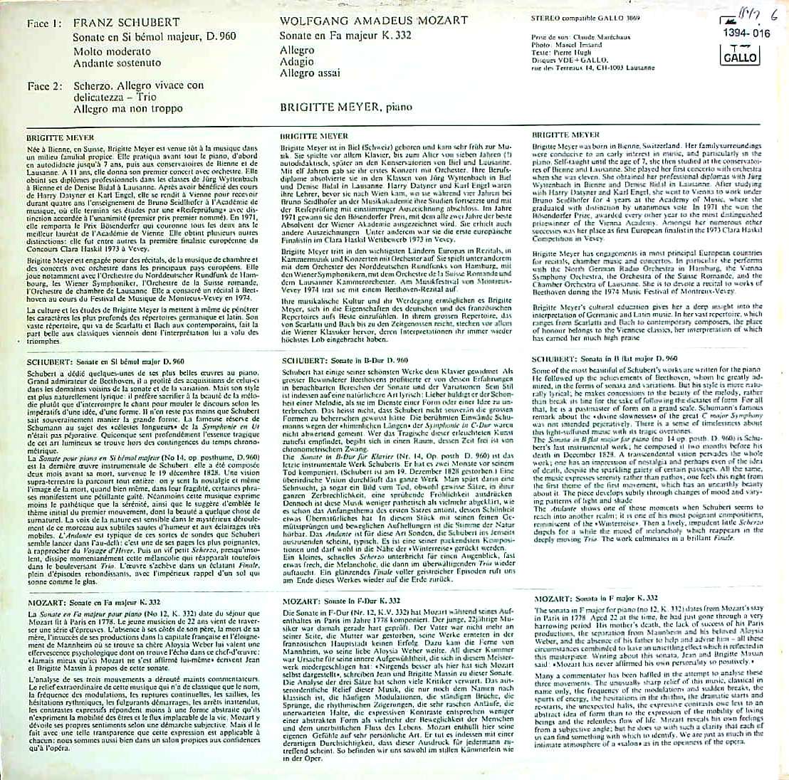 商品コード:1394-016[GALLO] B.マイヤー(pf) / シューベルト:Pfソナタ21番D.960, モーツァルト:Pfソナタ12番K.332