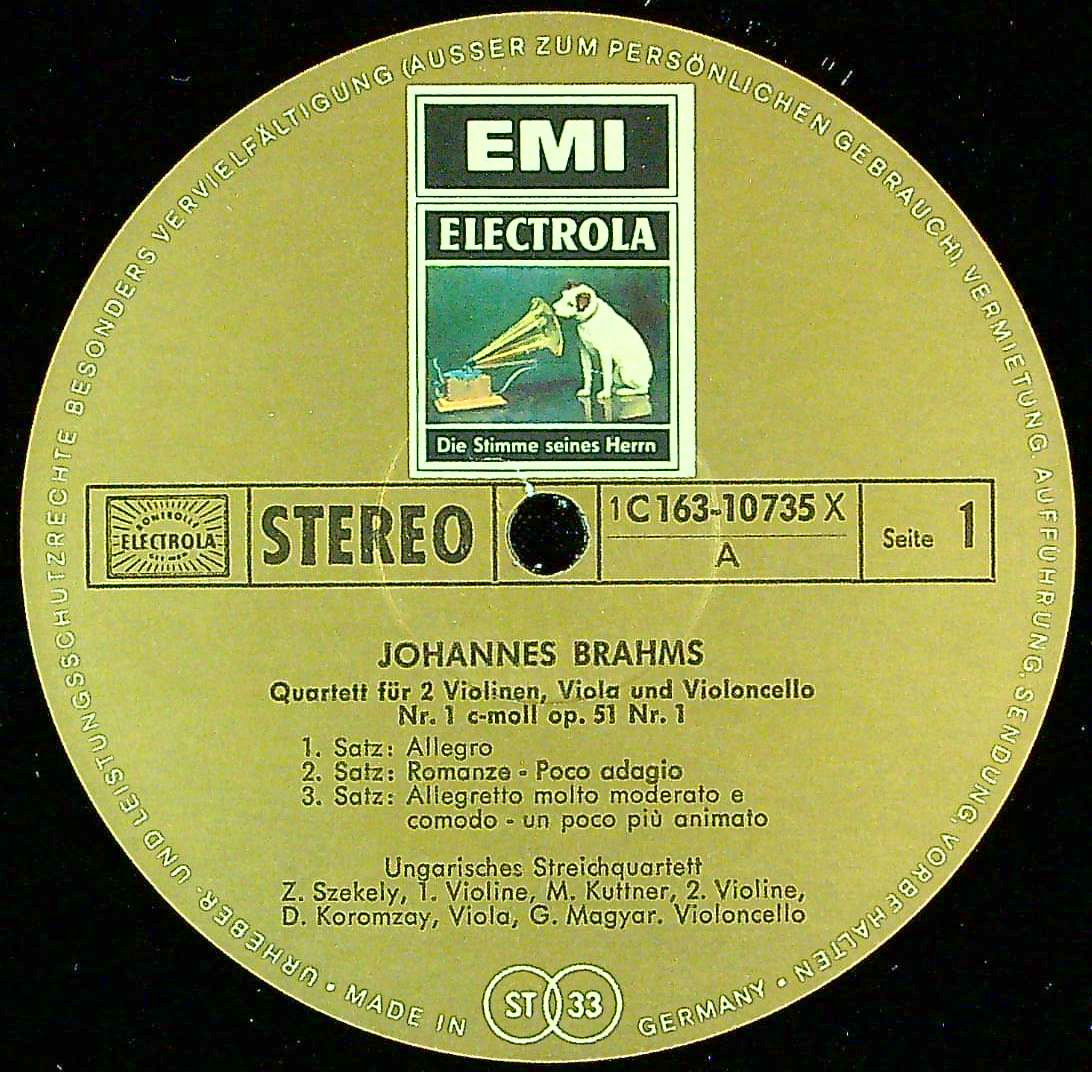 商品コード:REG-4529[独ELECTROLA] ハンガリーQt. D.グレイザー(cl) / ブラームス:SQ1番, 2番(2楽章まで)