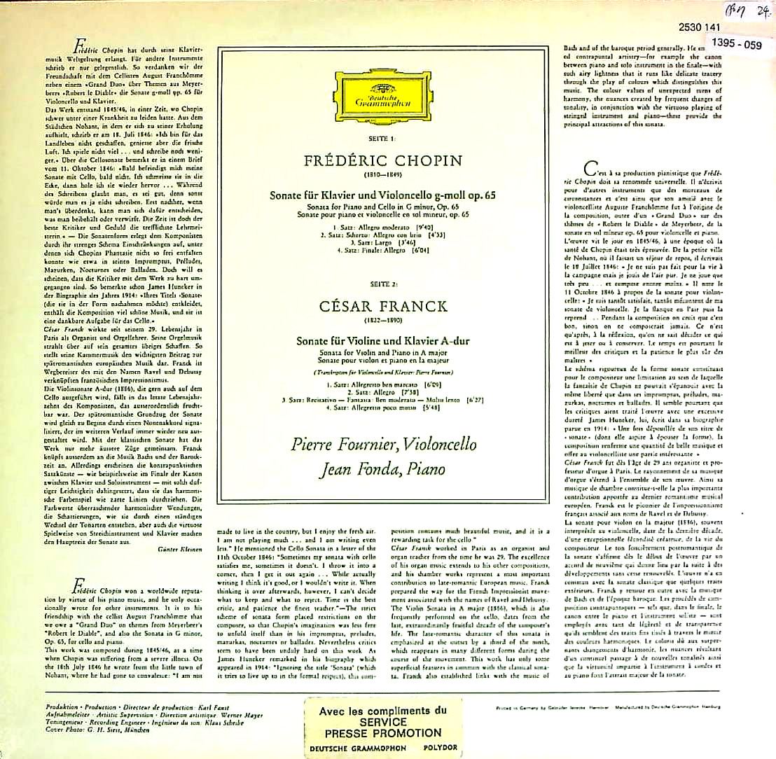 商品コード:1395-059[DGG] P.フルニエ(vc)/ ショパン:Vcソナタ Op.65, フランク:Vcソナタ(原曲:Vnソナタ)