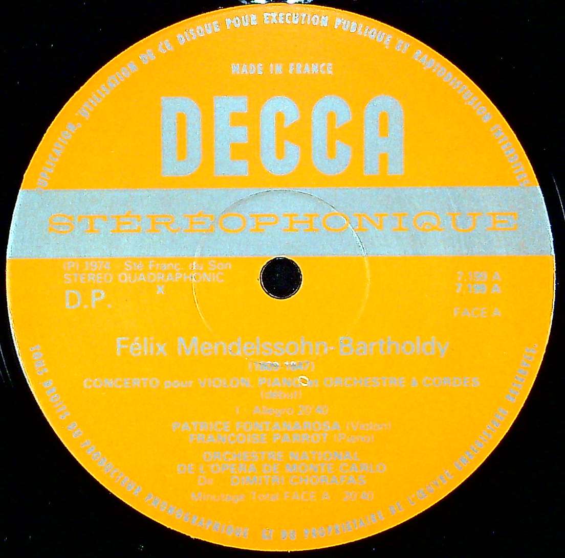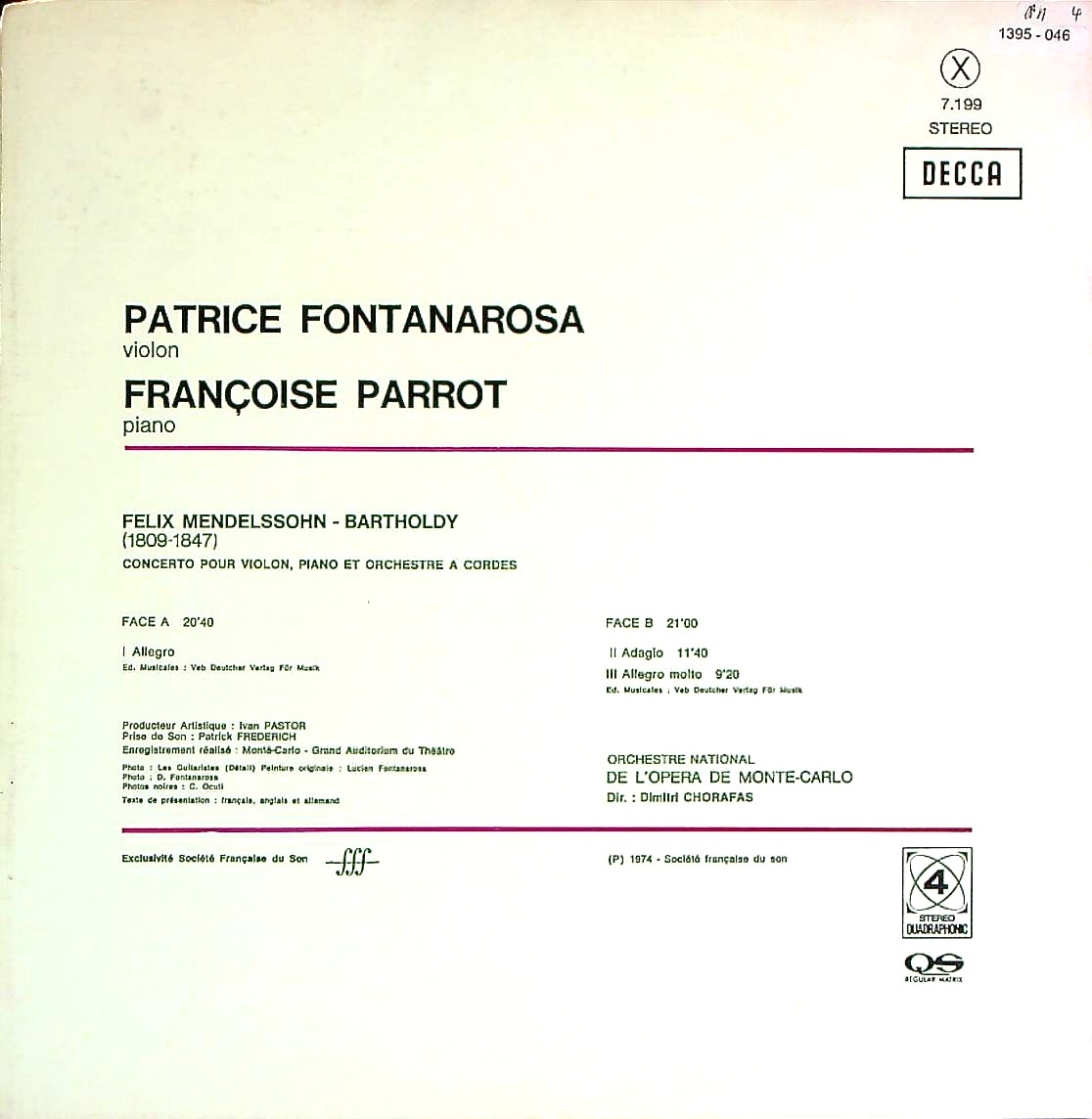商品コード:1395-046[DECCA] P.フォンタナローザ(vn)/ メンデルスゾーン:Vn・Pfのための二重協奏曲MWV O4