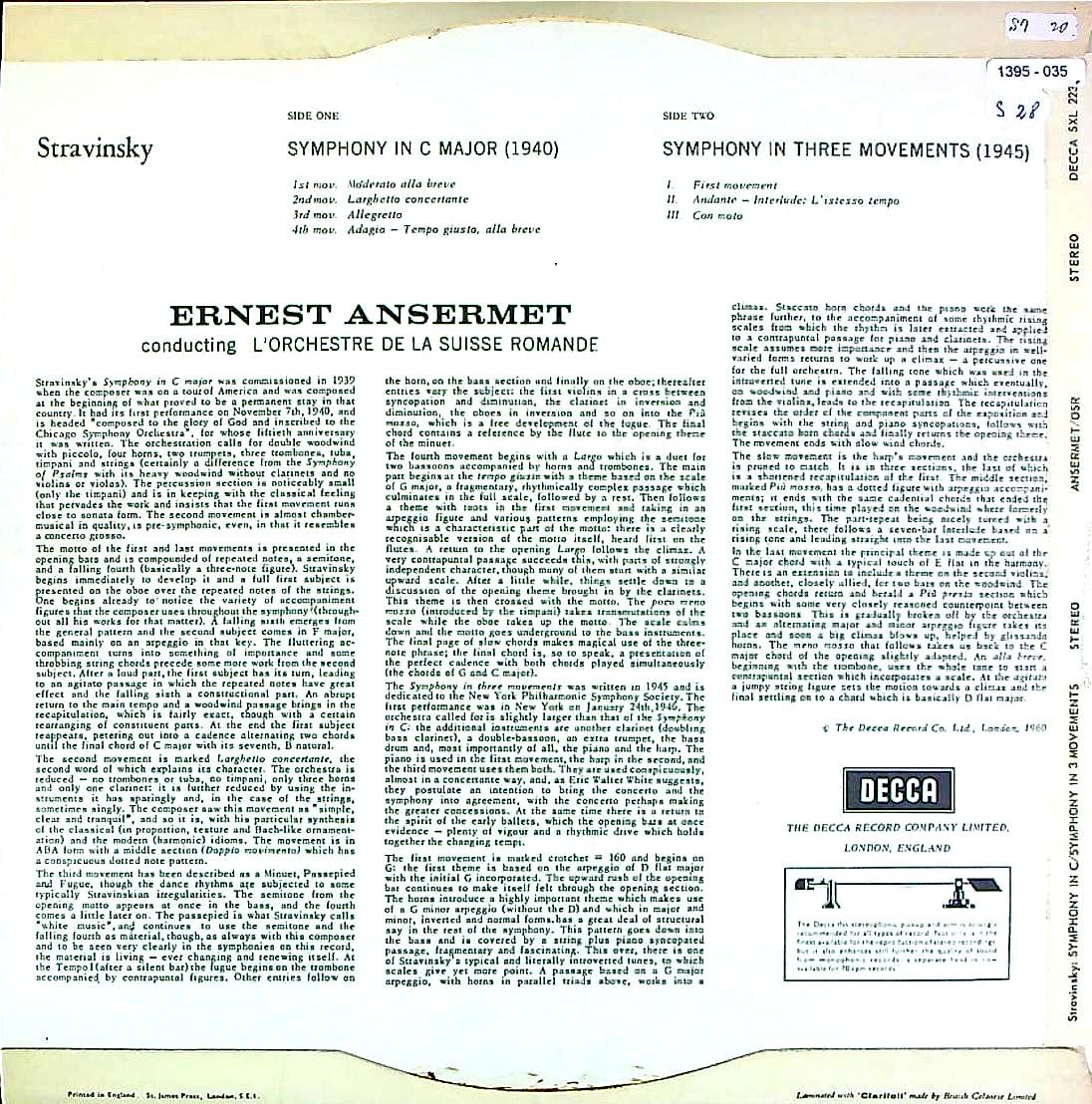 商品コード:1395-035[DECCA] E.アンセルメ/ ストラヴィンスキー:交響曲ハ長調(1940), 3楽章の交響曲(1945)