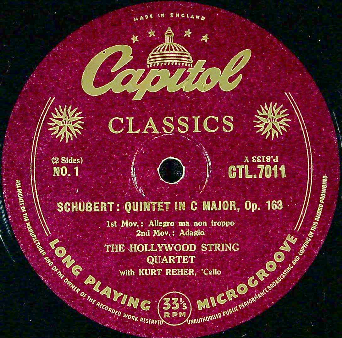 商品コード:1395-026[CAPITOL] ハリウッドQt. K.レハー(vc) / シューベルト:弦楽五重奏曲D.956