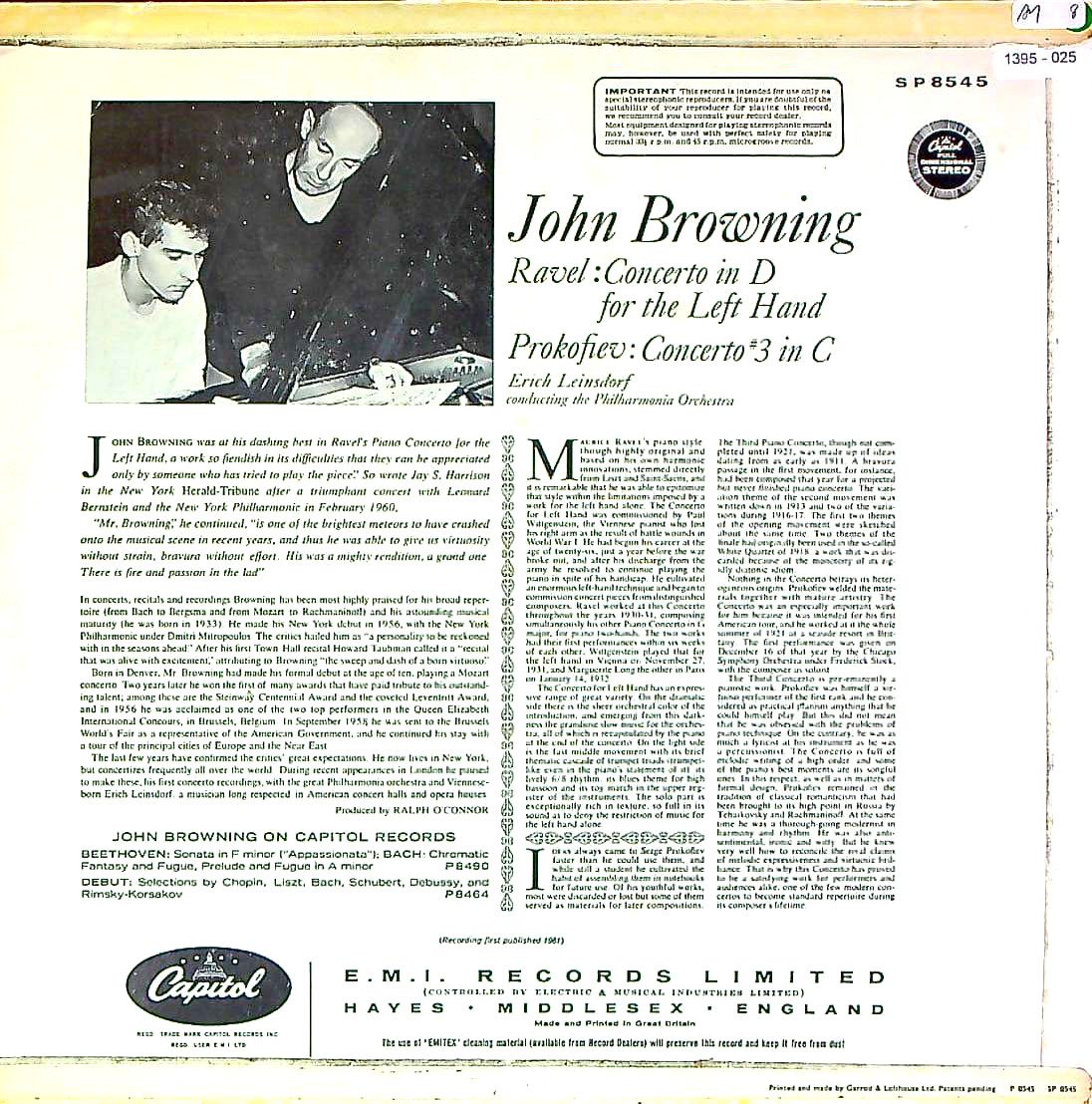 商品コード:1395-025[CAPITOL] J.ブラウニング(pf)/ ラヴェル:左手のためのPf協奏曲, プロコフィエフ:Pf協奏曲3番Op.26