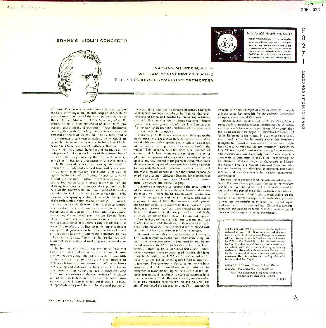 商品コード:1395-023p[CAPITOL] N.ミルシテイン(vn)/ ブラームス:Vn協奏曲Op.77