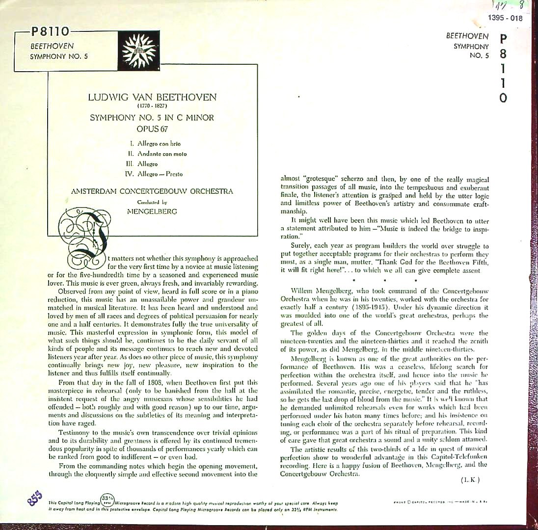商品コード:1395-018p[CAPITOL] W.メンゲルベルク/ ベートーヴェン:交響曲5番Op.67「運命」