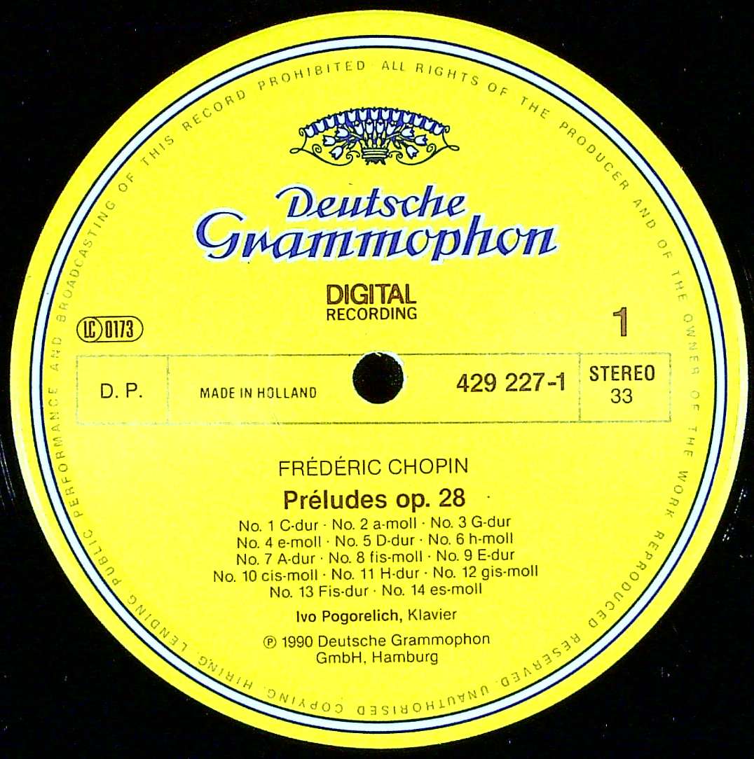 商品コード:1396-055[DGG] I.ポゴレリチ(pf) / ショパン:24の前奏曲Op.28(全曲