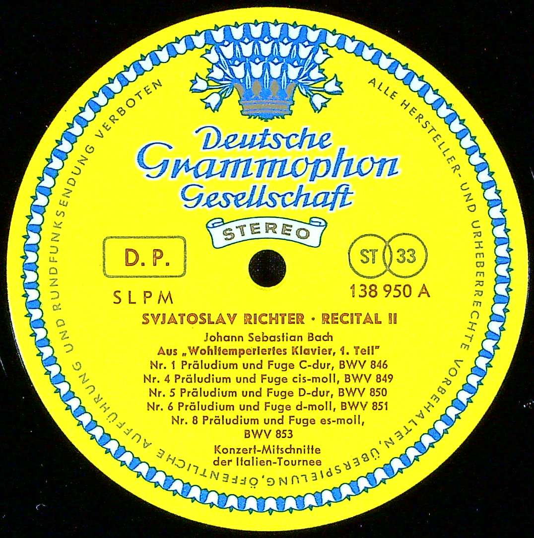商品詳細:1962年イタリア・コンサート・ツアーでのライブ録音。パレルモ、ローマ、フィレンツェ、ヴェネツィアの4都市で開いたコンサートからピックアップして2枚のLPに纏めたれた。これはそのVol.2になる。このツアーにはDGGの録音技師Heinz Wildhagenを含む録音チーム数人が同行した大掛かりなものになった。ライヴ特有の雑音や、聴衆の頻繁な咳払いなどが入っていて、臨場感のある録音となっている。Vol.2にはバッハの「平均律クラヴィア曲集・第1巻」から5曲が入り1970-3年のEURODISC=メロディア音源の全曲録音以前の平均律クラヴィア曲集を聴くことが出来る貴重な1枚。A面はこの5曲で占められ、B面にはシューベルト等4曲が入り、終わる。まるで、一夜のコンサートのように配列された1枚。ライヴならではのリヒテルの人柄がよく滲み出ていて、針を上げたくなくなる。リヒテルの良い面が全面に出た名ライブ!リヒテルは基本的にライヴ演奏に重きを置いたピアニストで、彼の本領も勢いもライヴで発揮されていることが多い。前年の1961年には英国ツアーも行っている。このイタリア・ツアーの約1か月前の9月24日~26日にはウィーン、ムジークフェラインザールでカラヤン/ウィーン交響楽団とチャイコフスキー: ピアノ協奏曲1番の録音を行ったばかりであった。9月28日から30日にはザンデルリング指揮のウィーン交響楽団とベートーヴェンのピアノ協奏曲第3番を録音している。10月2/3日にはミラノに入り、チェリビダッケ指揮のラ・スカラ座管弦楽団とブラームスのピアノ協奏曲第2番を演奏。10月5日 Turin、10月8日 トリエステ、10月11日 ミラノ、10月13日 ジェノヴァと予想より多くの場所で演奏会を開いている。但しDGGの録音チームが合流したのは10月13日であり10月13日以前のコンサートは録音されていないと思われる。一行は10月15-16日 ミラノ、10月19日 トリノ(マリオ・ロッシ指揮ブラームスのピアノ協奏曲第2番を演奏)、10月21日 フィレンツェ、10月23日 フィレンツェ、10月25日 ボローニャ、10月28日 ローマ(ブラームスのピアノ協奏曲第2番を演奏)、10月31日 ローマ (シューマン、ショパン、ドビュッシー、スクリャービンを演奏)、11月3日ペルージャ、11月5日 ラクイラ、11月9日 パレルモ、11月11日 ローマ(ベートーヴェンのピアノ協奏曲第3番を演奏)、11月13日 ナポリ、11月15日 ローマ(ベートーヴェンのピアノ協奏曲第3番を演奏)、同日ローマのソ連大使館で演奏、11月17日 ヴェネチア、11月18日ブレシアとかなり多くの場所を忙しく回っていたことが解かった。また録音チームは11月17日に帰国している。最後のイタリア・ツアーとなったブレシアから9日後の11月27日にはなんとモスクワで演奏会を行っている。更に12月6日と13日にはパリ・ツアーが敢行された。翌1963年には1月27日ロンドン・ロイヤル・フェスティバル・ホールで演奏会を行っている。これがリヒテルのイタリア・ツアーの詳しい内容である。LP2枚に入る録音は全ツアーの中のほんの一部ではあるが、歴史的価値だけではない貴重な記録である!