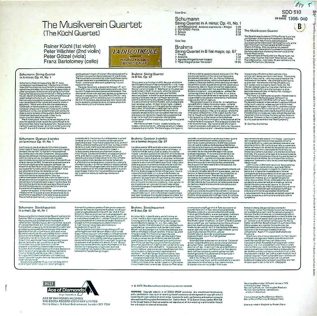 商品コード:1396-040p[DECCA] キュッヒルQt. / シューマン:弦楽四重奏曲1番Op.41-1, ブラームス:弦楽四重奏曲3番Op.67