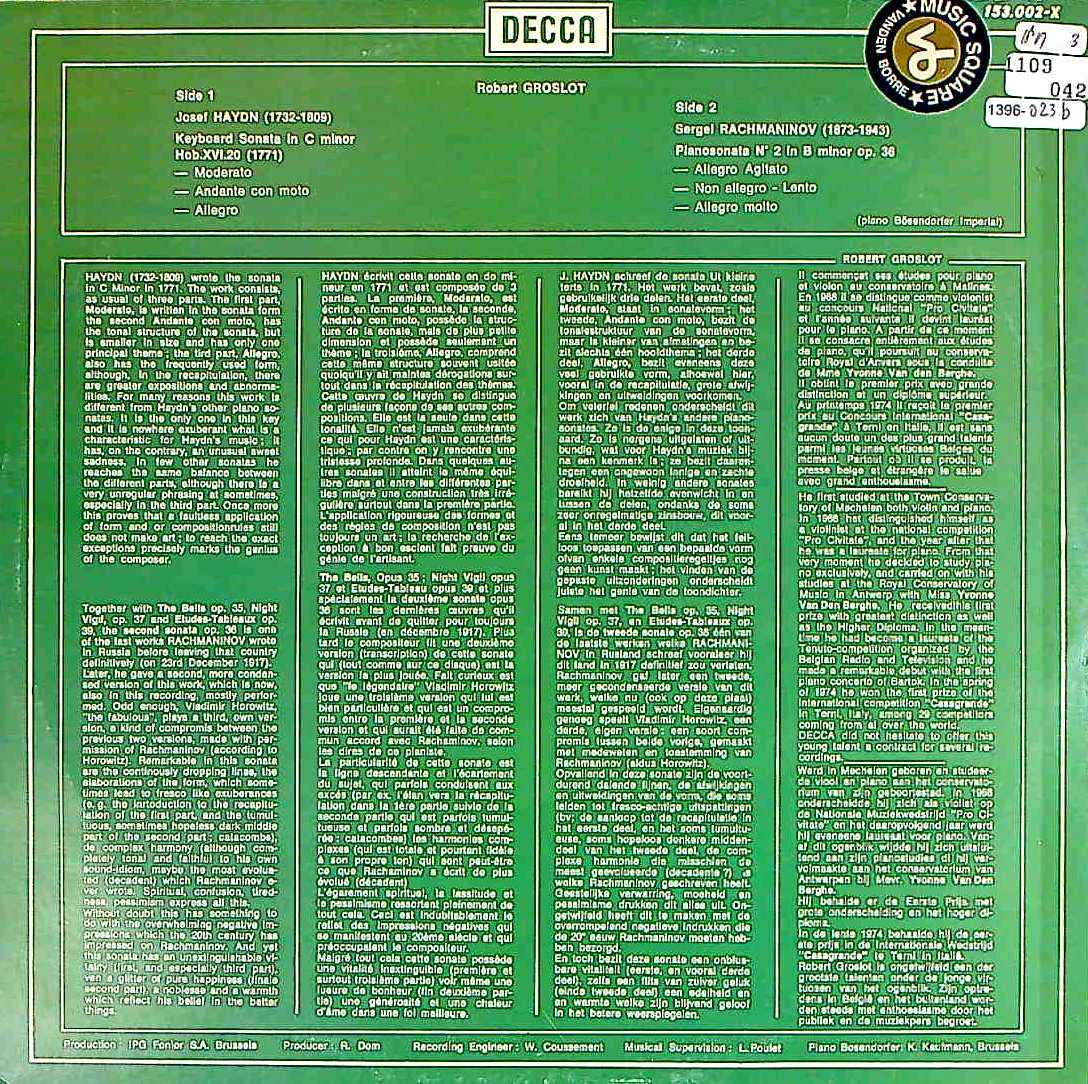 商品コード:1396-023b[DECCA] R.グルスロー(pf) / ハイドン:ソナタ20番Hob.XVI.20, ラフマニノフ:Pf ソナタ2番Op.36