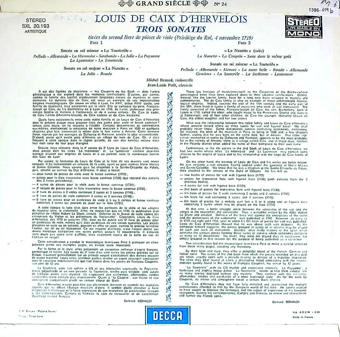 商品コード:1396-019b[DECCA] M.ルナール(vc)J.L.プティ(cemb) / 「Grand Siècle」Vol.24/デルヴロワ:ソナタ集/雉鳩, ナネット, バッタ