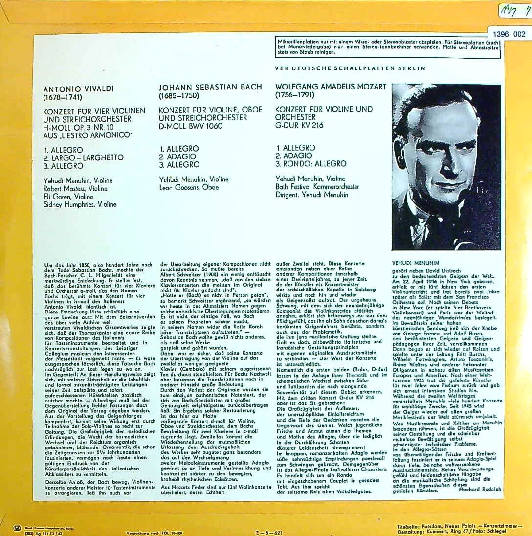 商品コード:1396-002n[ETERNA] Y.メニューイン(vn/指揮) 他/ ヴィヴァルディ:調和の霊感Op.3~第10曲Rv.580, バッハ, モーツァルト